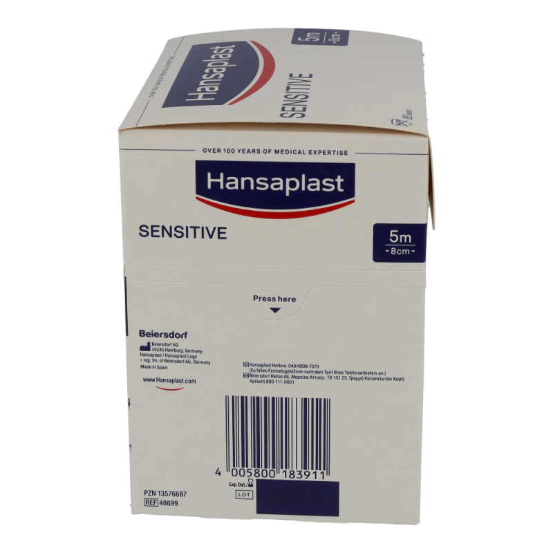 Hansaplast Sensitive Pflaster sind für empfindliche Haut und eignen sich für alle Arten von kleineren Wunden und Verletzungen. Das besonders hautfreundliche Material ist hypoallergen und flexibel. Hansaplast Sensitive Pflaster sind auch für Diabetiker geeignet, die Hautverträglichkeit ist dermatologisch bestätigt.