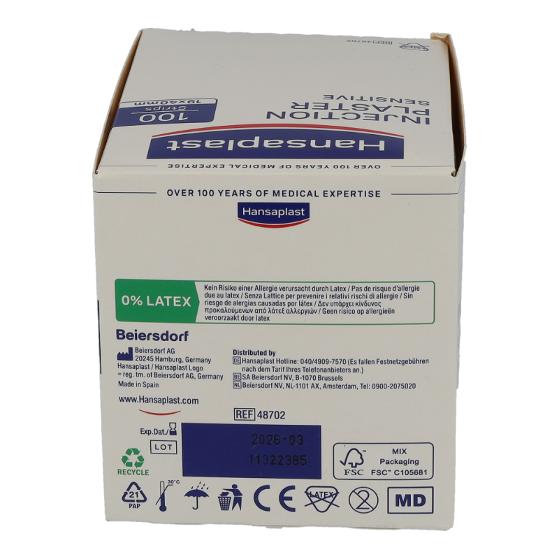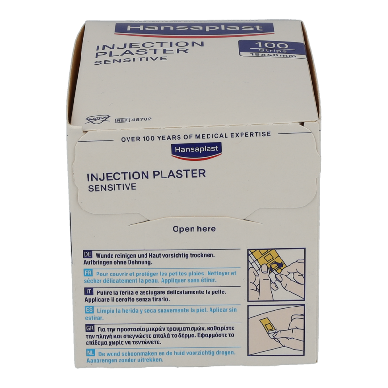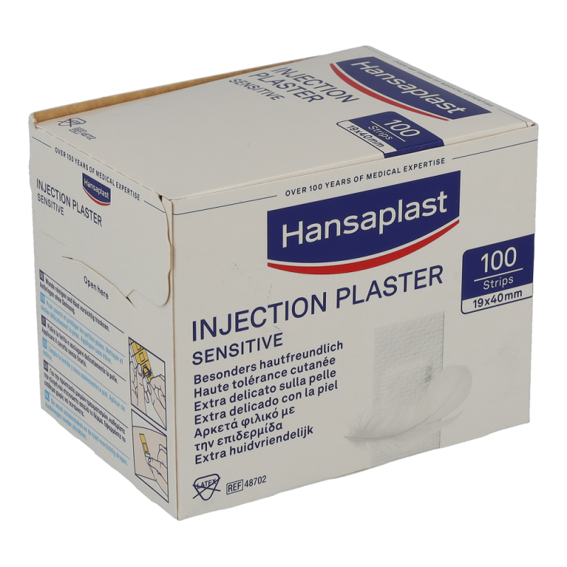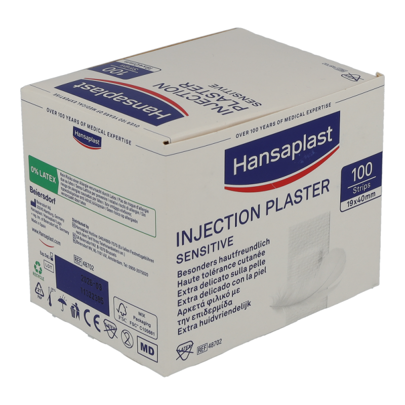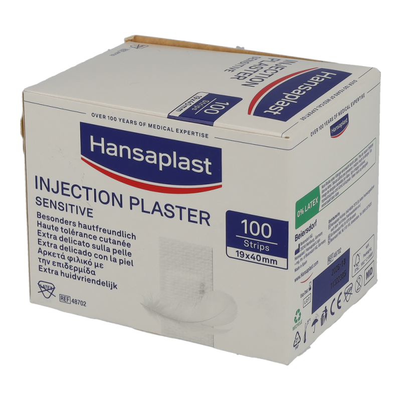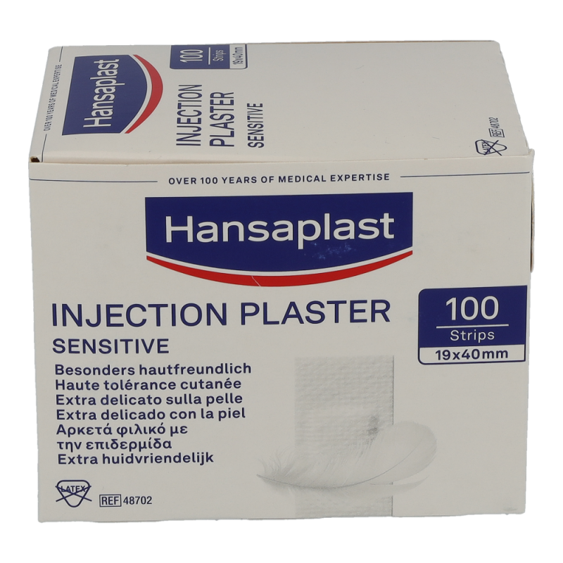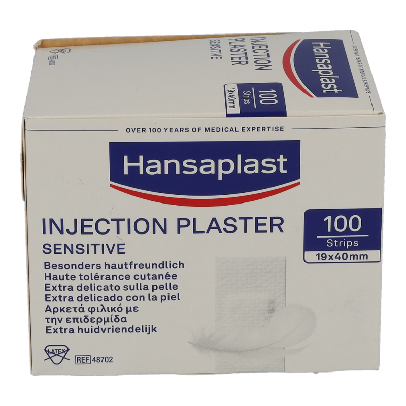 Die nicht verklebende Wundauflage schützt und polstert die Wunde. Dank der zuverlässigen Klebkraft bieten die Pflaster sicheren Halt und verrutschen nicht. Hansaplast Sensitive Meterware und Hansaplast Sensitive Injektionspflaster sind latexfrei.