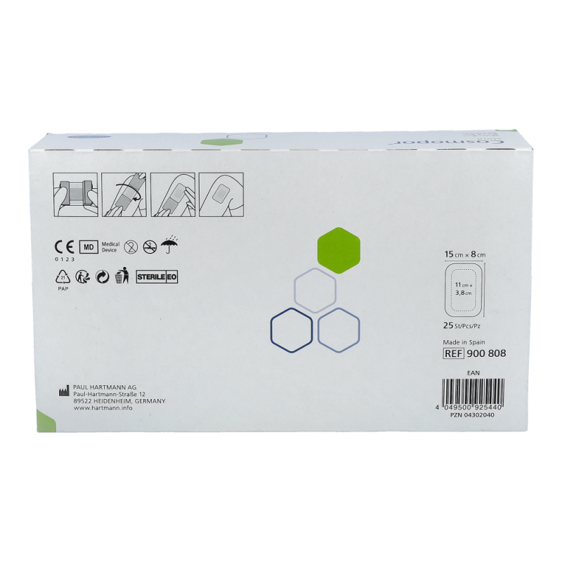 Cosmopor® Steril 8 x 15 cm ist ein selbshaftender Wundverband der nicht mit der Wunde verklebt, eine einwandfreie postoperative Wundversorgung bietet und besonders hautverträglich ist.