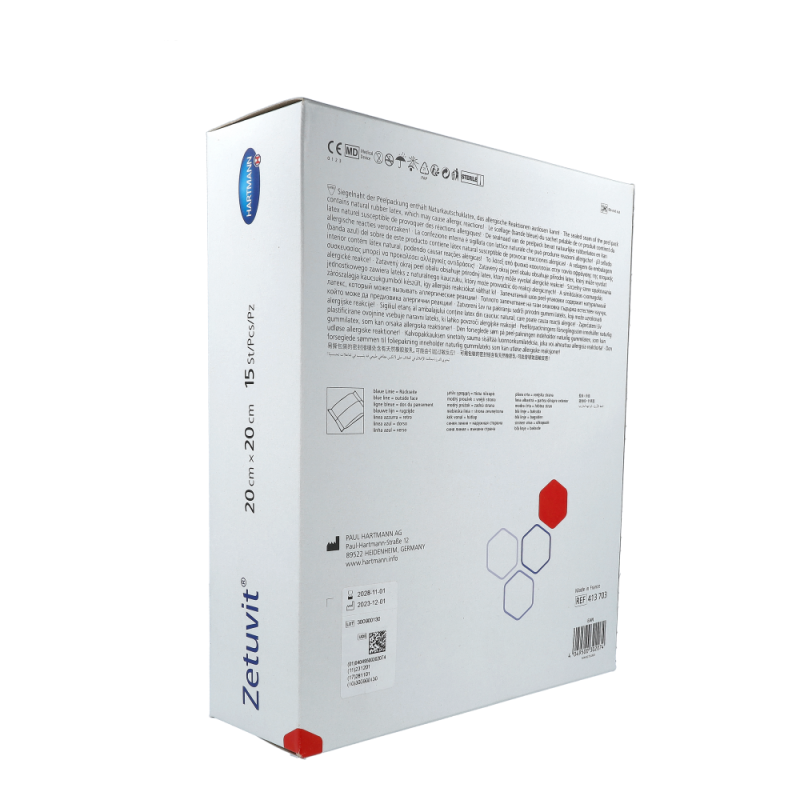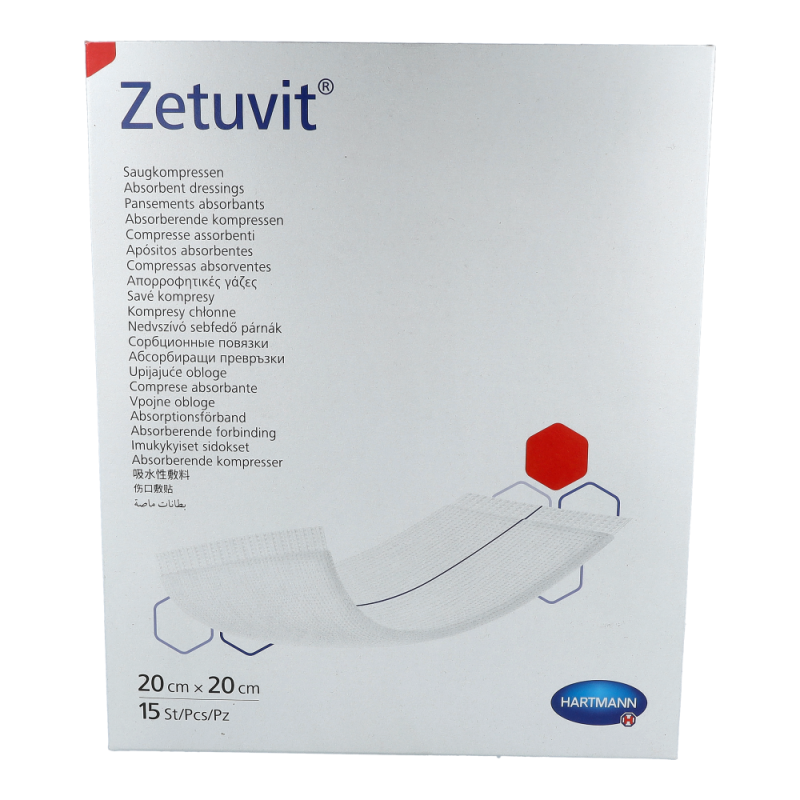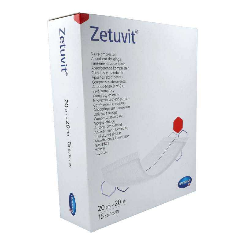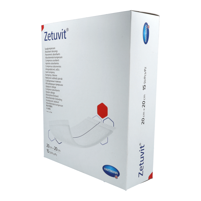 Hartmann Zetuvit Saugkompresse Steril ist hochsaugfähig mit einer seidenweichen Vliesumhüllung. Zetuvit wurde speziell für die Versorgung stark sezernierender Wunden entwickelt. Sie besteht aus vier verschiedenen Materialschichten, die sich optimal ergänzen und der Saugkompresse ihre überzeugenden Eigenschaften verleihen. Für die äußere Umhüllung findet ein besonders effektives Zweischicht-Vlies Verwendung: Die wundnahe Schicht aus hydrophoben Polyamid-Fasern nimmt selbst keine Flüssigkeit auf und beugt dadurch der Verklebung mit der Wunde vor. Die Vliesinnenseite aus hydrophilen Zellwollfasern verfügt dagegen über eine hohe Kapillarwirkung, durch die Sekrete rasch in den Saugkörper weitergeleitet werden. Erhältlich in mehreren verschiedenen Größen.