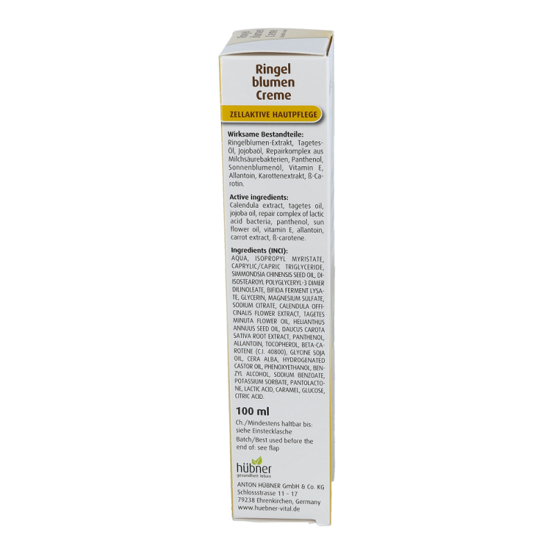 Hübner Ringelblumen Creme nutzt die hautschützenden Eigenschaften der Wirkstoffe aus der Ringelblume in Verbindung mit einem natürlichen Repair-Komplex, der den lichtbedingten Alterungsprozeß verlangsamen und Schäden an den Hautzellen vorbeugen kann.
