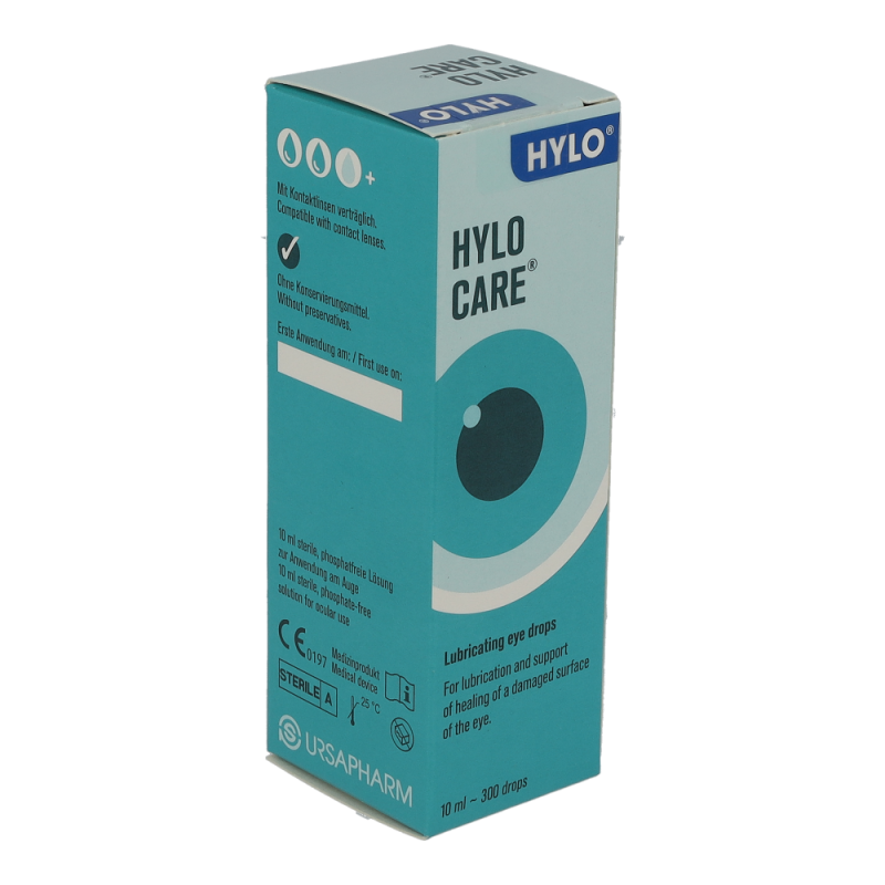 HYLO CARE befeuchtende Augentropfen sind dank der Kombination aus hochwertiger Hyaluronsäure und Dexpanthenol auf die Bedürfnisse trockener und gestresster Augen ideal abgestimmt. Sie pflegen die Augenoberfläche und unterstützen durch das Plus an Feuchtigkeit die Wundheilung von Hornhaut und Bindehaut bei Verletzungen sowie nach Operationen. Durch ihre regenerationsfördernden Eigenschaften sind HYLO CARE® befeuchtende Augentropfen besonders bei leichten Verletzungen der Augenoberfläche geeignet – bestellen Sie jetzt dort, wo Sie sich sicher sind!
