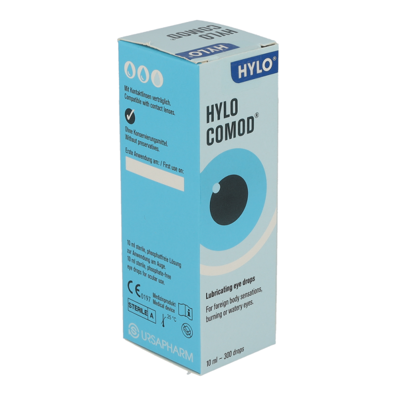 HYLO COMOD® befeuchtende Augentropfen bieten trockenen Augen die Feuchtigkeit, die sie benötigen. HYLO COMOD® befeuchtende Augentropfen bieten eine wirkungsvolle und zuverlässige (Rück-) Befeuchtung trockener Augen. Durch die Ergänzung des natürlichen Tränenfilms sind die Augen langanhaltend vor schwerwiegenden Schädigungen durch Austrocknung geschützt. Somit sind HYLO COMOD® befeuchtende Augentropfen die richtige Lösung bei Beschwerden trockener Augen.