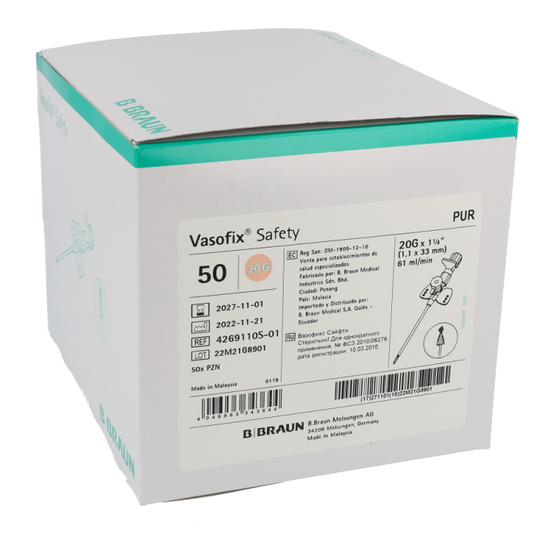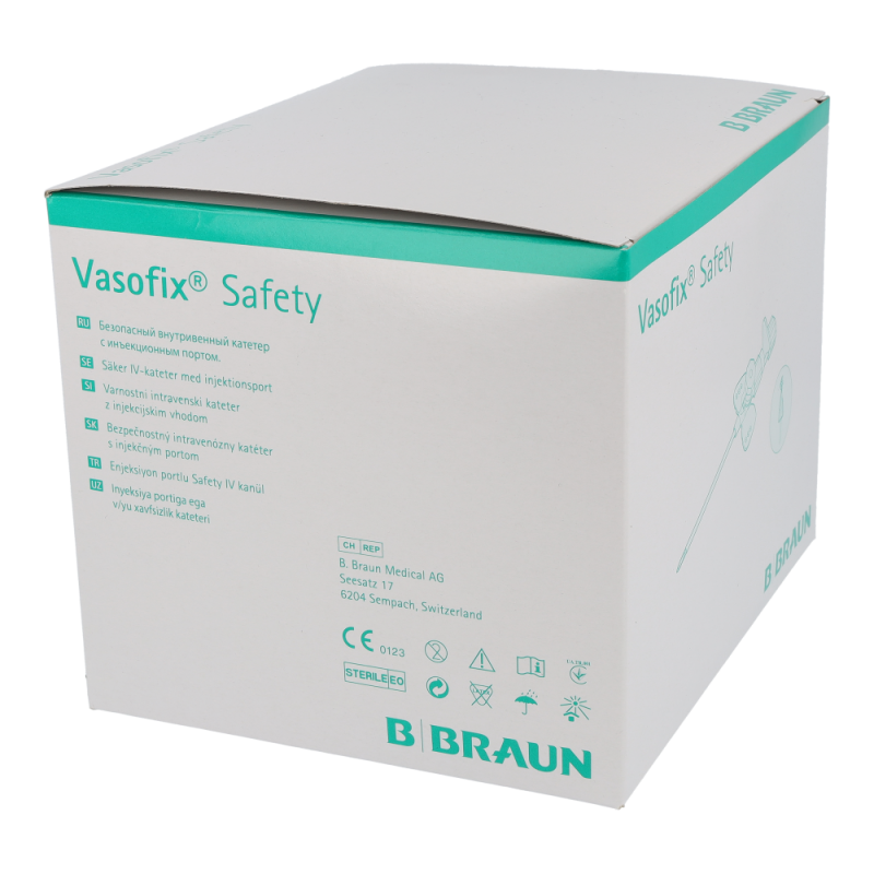Injektionsverweilkanüle Vasofix Saf G20 ist mit einem Zuspritzventil ausgestattet. So wird ein sanfter Übergang zwischen Katheterrohr und Kanüle gewährleistet. Einzeln verpackt.