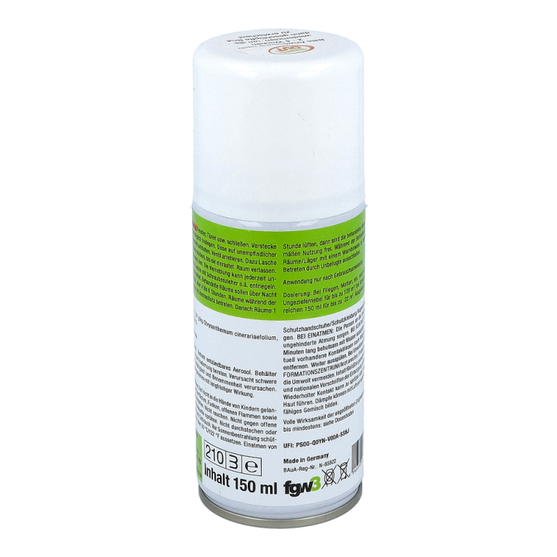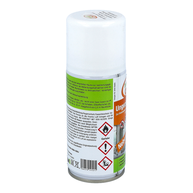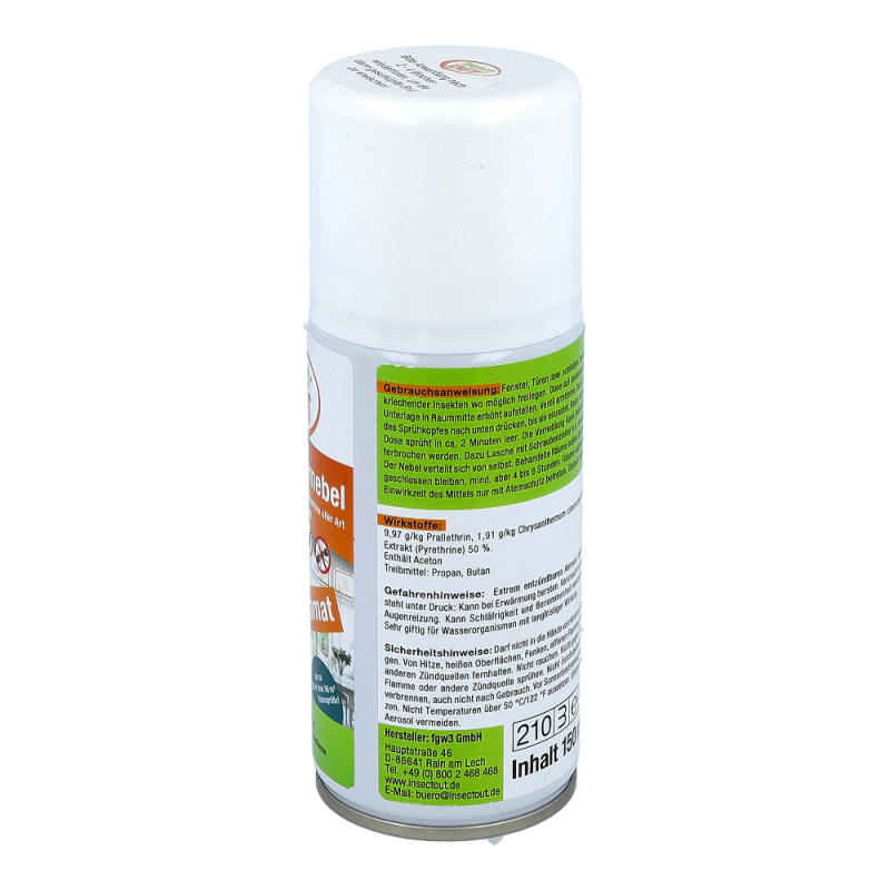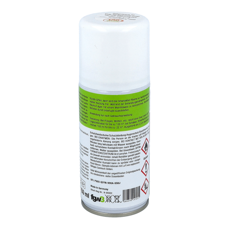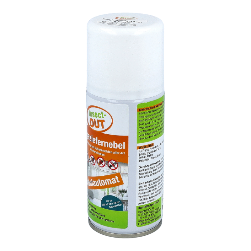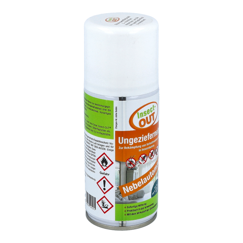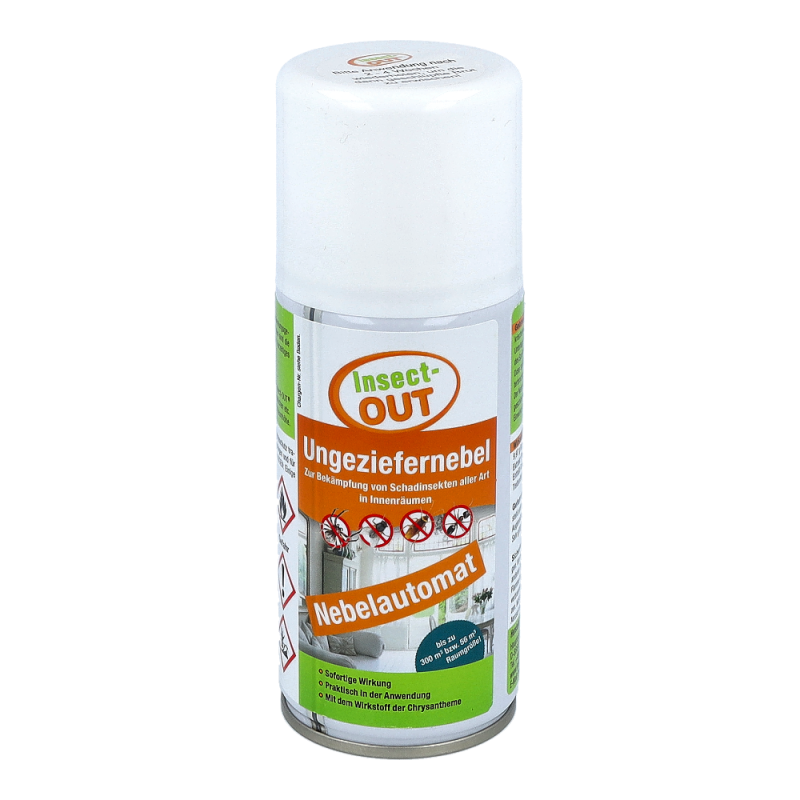 Beihartnäckigem und großflächigem Insektenbefall von Innenräumen wird je nachRaumgröße der Ungeziefernebel angewendet. Je nach Ungeziefer variiert dieWirkung einer Dose für Raumgrößen bis zu 300m³. Nach Entriegelung einer Dosemuss der Raum verlassen werden. Einwirkzeit am besten über Nacht, nachausreichendem Lüften können die Räume wieder benutzt werden. Auch fürLebensmittelbetriebe geeignet. Wiederbehandlung nach 4 bis 6 Wochen wirdempfohlen, um nachschlüpfende Brut zu vernichten.