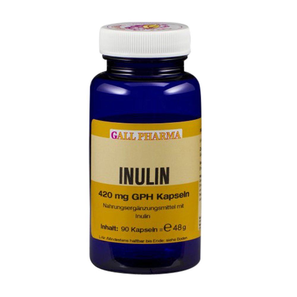 Inulin 420 mg GPH Kapseln beeinflussen mit den präbiotischen Eigenschaften des Inulins ein weites Spektrum von Abläufen im Körper. Inulin fördert die Darmgesundheit und die vermehrte Bakterienbildung führt zu einer verbesserten Löslichkeit von Mineralien. Dies kann auch einen positiven Einfluss auf eine menopausal bedingte Osteoporose haben. Dieses Produkt erhalten Sie in den Packungsgrößen 360 und 750 Stück.