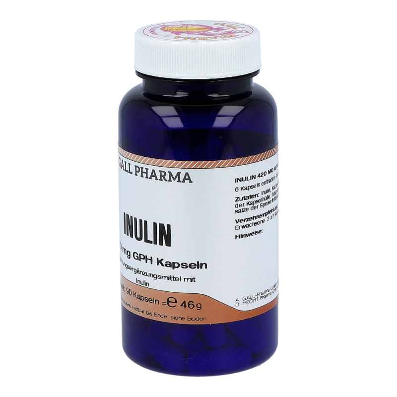 Gall Pharma Inulin 420 mg Kapseln 90 Stk. beeinflussen mit ihren präbiotischen Eigenschaften ein weites Spektrum von Abläufen im Körper. Inulin ist ein besonderer Ballaststoff, der die Aufnahme von Calcium und Magnesium erhöhen kann und dafür sorgt, dass der Körper diese Mineralstoffe auch besser speichern kann. Damit trägt Inulin entscheidend zu einem gesunden Knochenapparat bei. Insbesondere bei der Vorbeugung gegen Osteoporose spielen diese Mineralstoffe eine wichtige Rolle