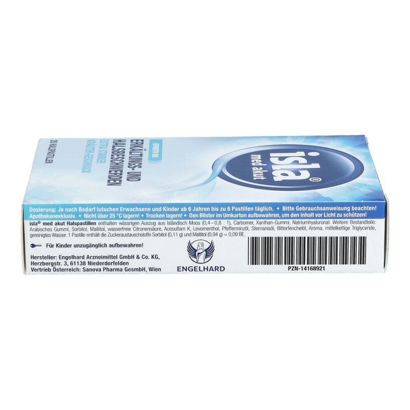 Die Halspastillen enthalten wässrigen Auszug aus Isländisch Moos (0,4 – 0,8 : 1), Carbomer, Xanthan-Gummi, Natriumhyaluronat.