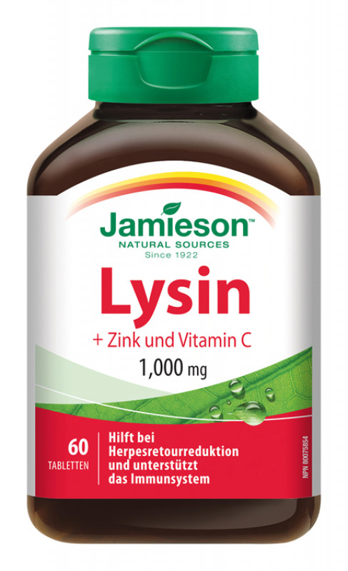 Lysin ist eine essentielle Aminosäure, die in einer Kombination mit Vitamin C und Zink die richtige Funktion des Immunsystems unterstützt, trägt zur Minderung der Herpeshäufigkeit bei. Lysin unterstützt die Kollagenbildung in der Haut, stärkt die Sehnen und Bindegewebe in den Gelenken.