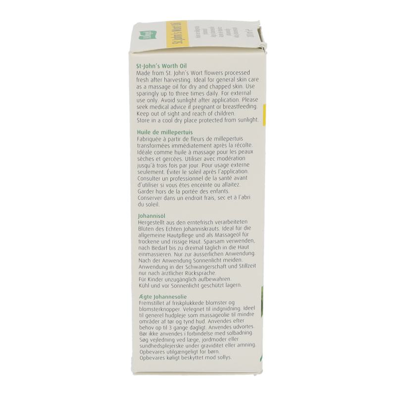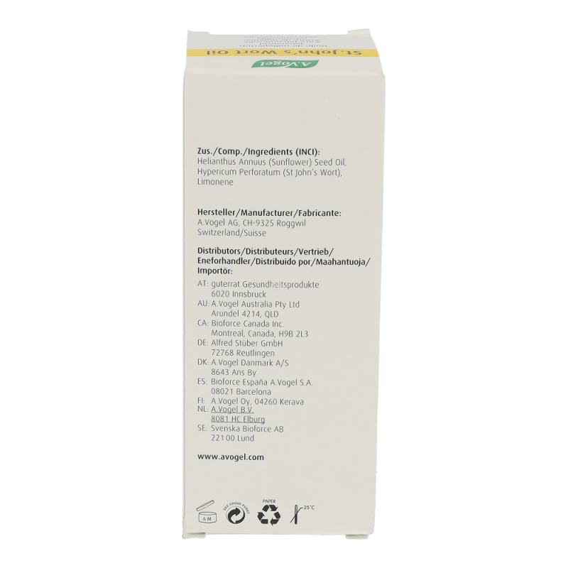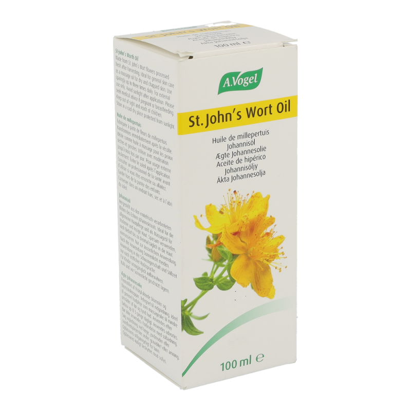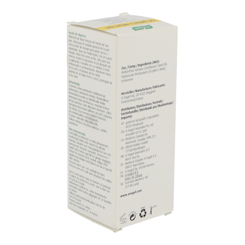 A.Vogel Johanniskraut Öl besteht aus frisch gepflückten, zerkleinerten Blüten und Blütenknospen von Johanniskraut mit Sonnenblumenöl gemischt, das längere Zeit der Sonne ausgesetzt wird.