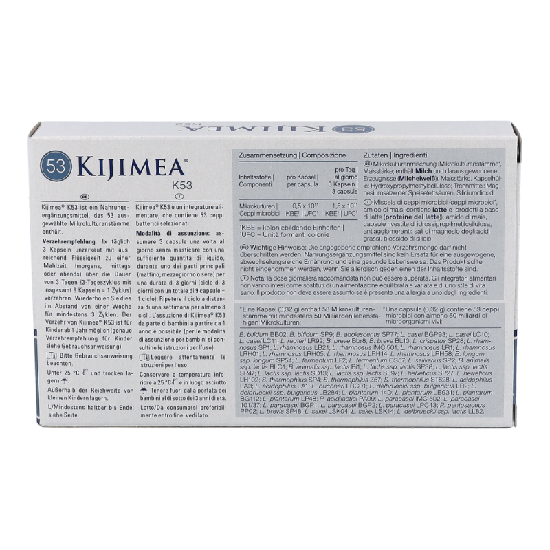 Kijimea® K53 Kapseln 18 Stk. ist ein diätetisches Lebensmittel für besondere medizinische Zwecke (ergänzende bilanzierte Diät) zum Diätmanagement bei allergischer Rhinokonjunktivitis, z. B. Heuschnupfen, mit den typischen Symptomen laufende/juckende/verstopfte Nase, Niesen, juckende/tränende Augen.