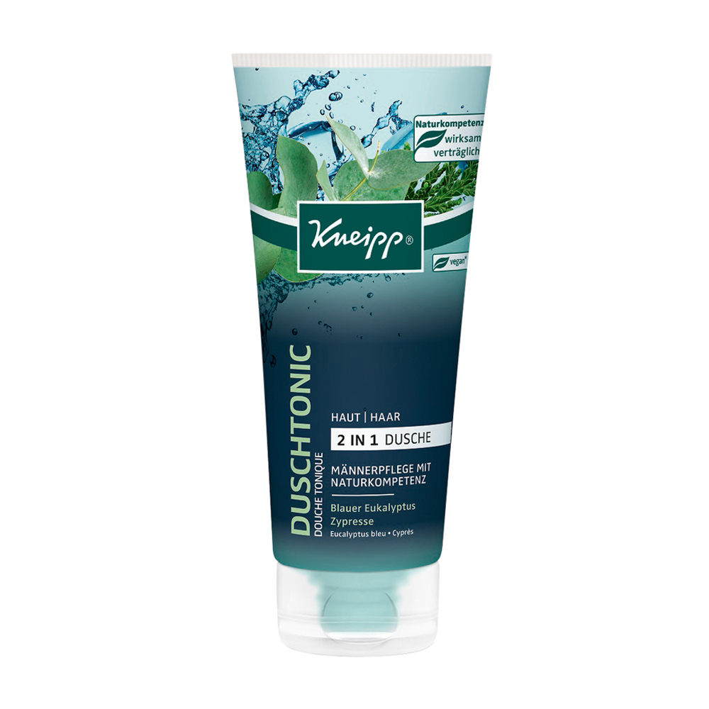 Kneipp Dusch Tonic Männer 2 in 1 Blauer Eukalyptus & Zypresse 200 ml mit dem spritzigen Duft aus blauem Eukalyptus und würziger Zypresse kombiniert mit ätherischem Minzöl sorgt für ein belebendes Duscherlebnis – mit erfrischendem Effekt. Die pflanzliche Pflegeformel bewahrt die Feuchtigkeit der Haut und schützt sie vor dem Austrocknen.
