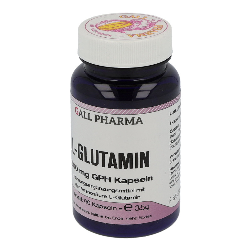 Gall Pharma L-Glutamin 500 mg Kapseln 60 Stk. haben eine positive Auswirkung auf die Gedächtnis- und Konzentrationsleistung. L-Glutaminsäure und ihr Säureamid sind Energieträger im Immunsystem und im Energiestoffwechsel der Muskulatur. Für viele Sportler besteht die zentrale Wirkung von L-Glutamin in der Beschleunigung der Regeneration nach dem Training, es sorgt für spürbar bessere Erholung, vor allem bei hoher Trainingsfrequenz. Dies ist vor allem auf die begünstigte, schnelle Wiederauffüllung der Glykogen-Speicher zurückzuführen – Spitzenprodukte von Gall Pharma jetzt online bestellen und direkt zu Ihnen nach Hause liefern lassen!