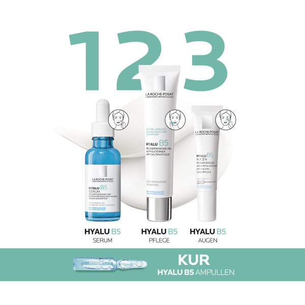 La Roche-Posay Hyalu B5 Pflege ist eine intensiv korrigierende Anti-Falten Pflege für empfindliche Haut. Sie wird bei Verlust an Volumen und Straffheit sowie müder und fahler Haut eingesetzt. Der Wirkstoffkomplex mit hochkonzentrierter Hyaluronsäure und pflegendem Vitamin B5, wirkt Anzeichen natürlicher Hautalterung entgegen und stärkt die Hautbarriere vor äußeren Alterungsfaktoren -.
