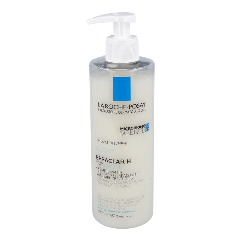 La Roche-Posay Effaclar H ISO-Biome Reinigungscreme 390 ml ist eine beruhigende und feuchtigkeitsspendende Reinigung für Gesicht und Körper bei trockener sowie zu Akne neigender Haut. Die ausgleichende Waschcreme wirkt Unreinheiten entgegen und unterstützt zugleich geschwächte Haut dabei, die Auswirkungen austrocknender Akne-Behandlungen zu mildern.