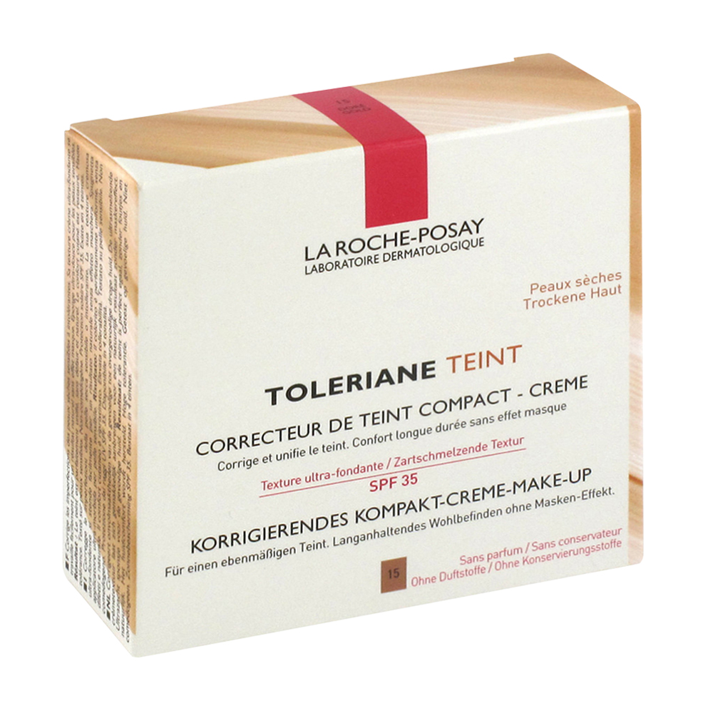 Toleriane Kompakt Make-Up Creme deckt Hautunregelmäßigkeiten bei trockener und empfindlicher sowie leicht reizbarer Haut ab. Seine zartschmelzende, cremige Textur sorgt durch leichtes Auftragen für ein natürliches Ergebnis ohne Masken-Effekt.