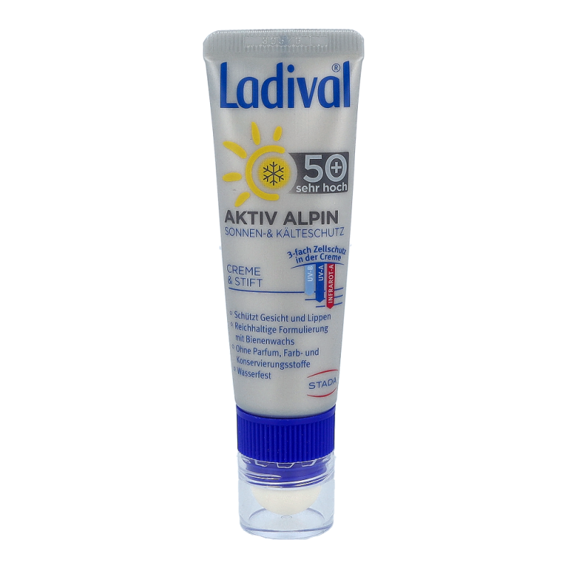 Die Ladival® Aktiv Alpin „Winter-Kombi“ schützt Gesicht und Lippen vor Sonne dank sehr hohem Lichtschutzfaktor, vor Kälte bis -18 °C und zusätzlich vor Austrocknung. Die Sonnenschutzkombination ist besonders praktisch für unterwegs und nicht nur für Wintersportler. Handlicher Sonnenschutz für alle, die gerne im Winter draußen aktiv sind – alle Produkte von Marke Ladival® mit hohem Rabatt bestellen!