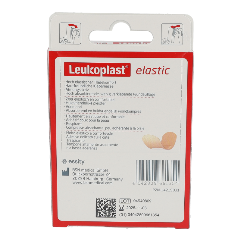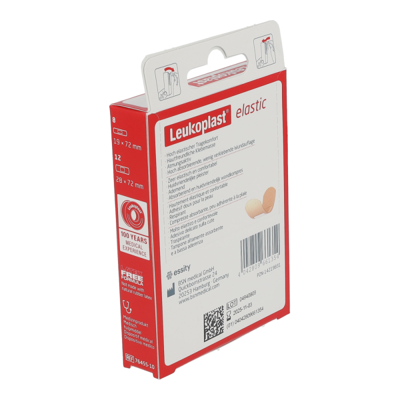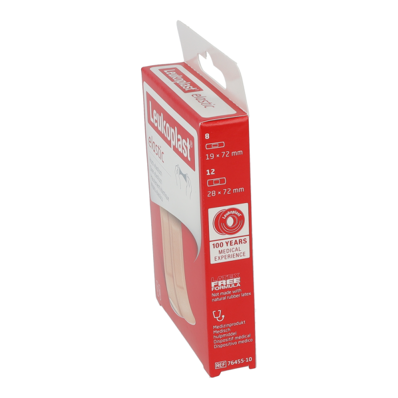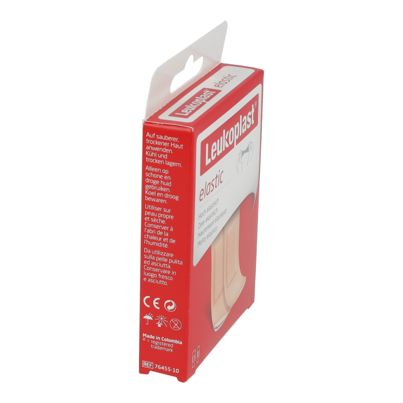 Leukoplast Elastic Strip ist besonders flexibel, elastisch und bequem. Es klebt sogar oben auf Gelenken, Fingern und anderen Körperteilen, die Sie viel bewegen. Zuverlässige Haftfestigkeit sorgt auch bei starker Schweißbildung dafür, dass das Pflaster klebt.