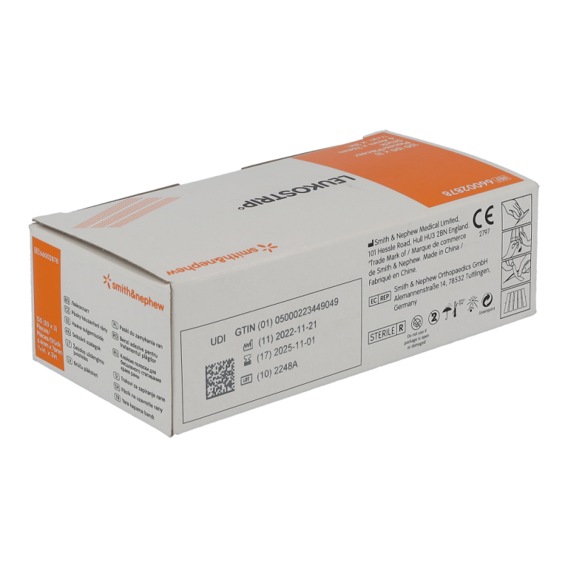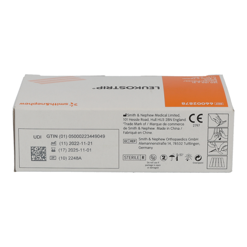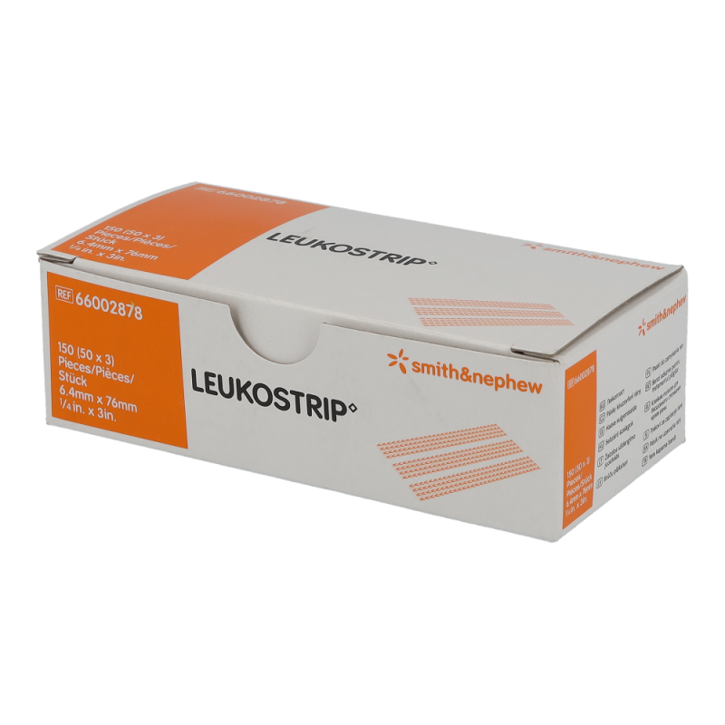 Leukostrip ist ein Wundnahtstreifen mit programmierter Rückstellkraft. LEUKOSTRIP Wundnahtstreifen bestehen aus 100% Polyamid-Gewebe und sind mit einem besonders hautfreundlichen Kleber versehen, der dennoch eine sichere Adaption der Wundränder gewährleistet. Leukostrip ist auch als äS = skin tone“ also hautfarben erhältlich und hat sich dort bewährt, wo eine möglichst unauffällige Anwendung erwünscht ist.