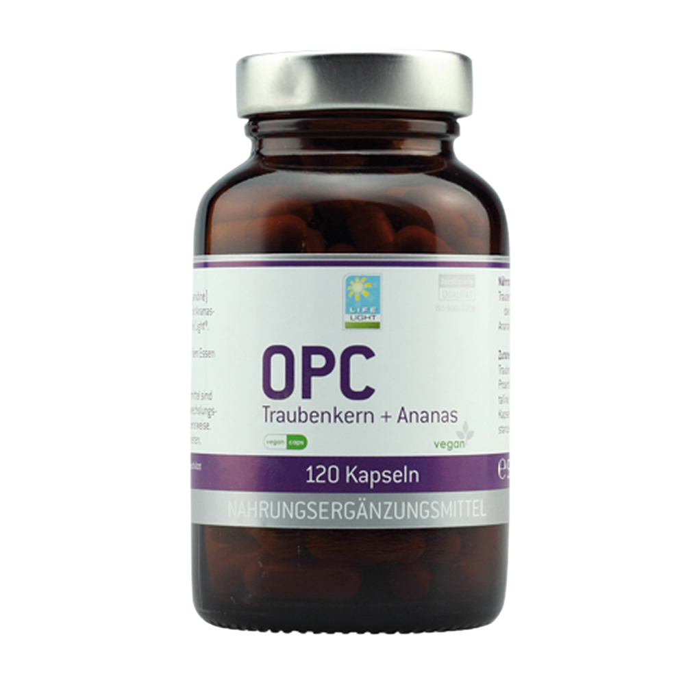 Life Light OPC Kapseln werden durch ihren positiven Einfluss auf das Herzkreislauf-System geschätzt. OPC wird aus Traubenkernen und Ananasextrakten gewonnen. Für die Wirkung von OPC ist die Qualität der verwendeten Rohstoffen entscheidend. Nur in hochwertigen Traubenkern-Extrakten sind ausreichend Polyphenole und Reservatol vorhanden.