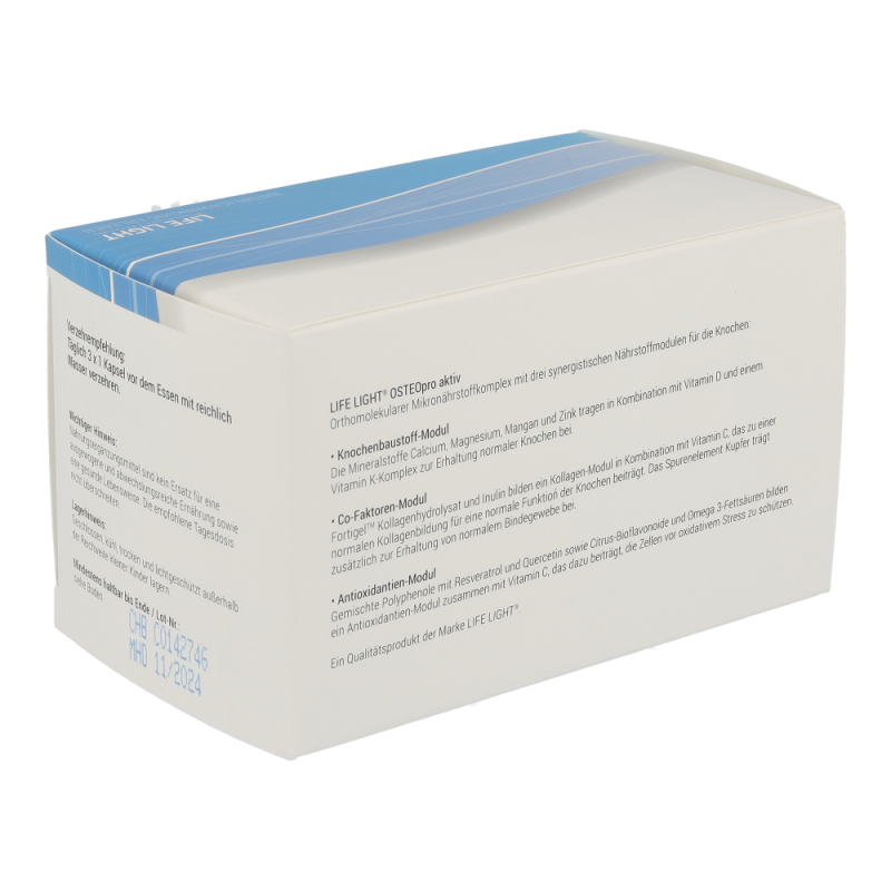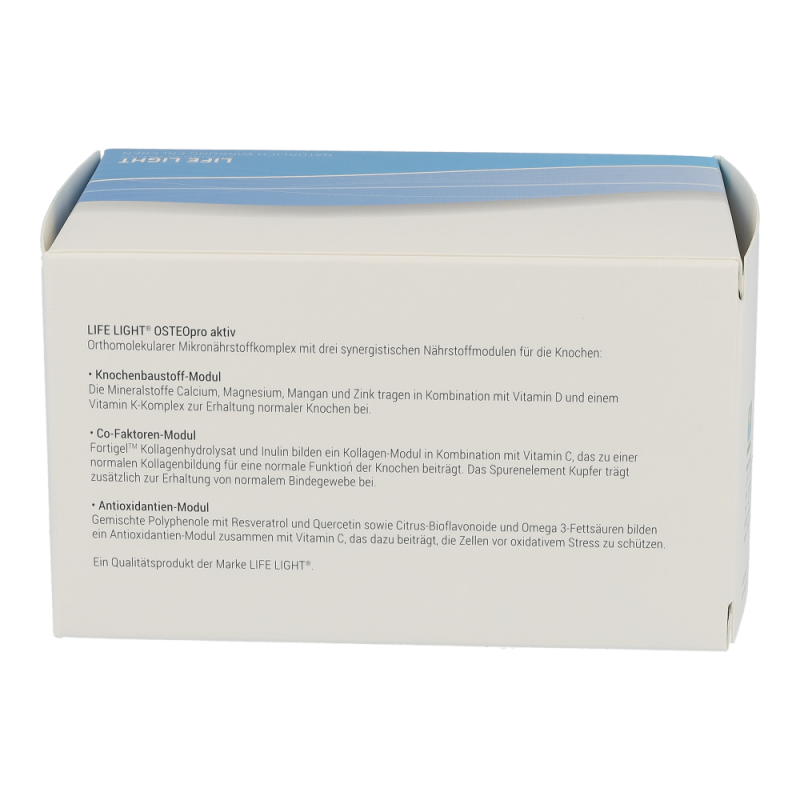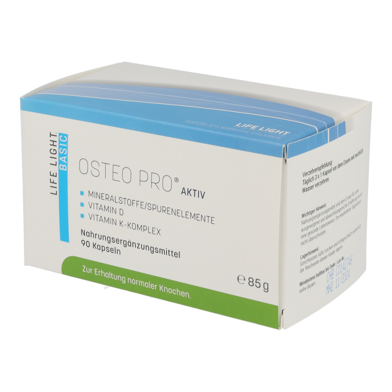 Life Light Osteo Pro Aktiv Kapseln sind ein hochwertiger Mikronährstoffkomplex für unseren Rücken. Das enthaltene Magnesium, Calcium tragen sowie die Vitamine D und K zur Erhaltung normaler Wirbelknochen und zur normalen Funktion der Rückenmuskulatur bei. Zusätzlich tragen die Spurenelemente Mangan zur Bildung und Kupfer zur Erhaltung von normalem Bindegewebe im Rückenbereich bei -.