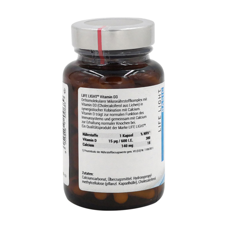 Life Light Vitamin D 3 Kapseln tragen zur Erhaltung normaler Zähne und zu einer normalen Funktion des Immunsystems bei. Viele Menschen haben einen Vitamin D-Mangel, ohne es zu wissen. Dieses Mittel kann helfen, diesen Mangel zu beheben.