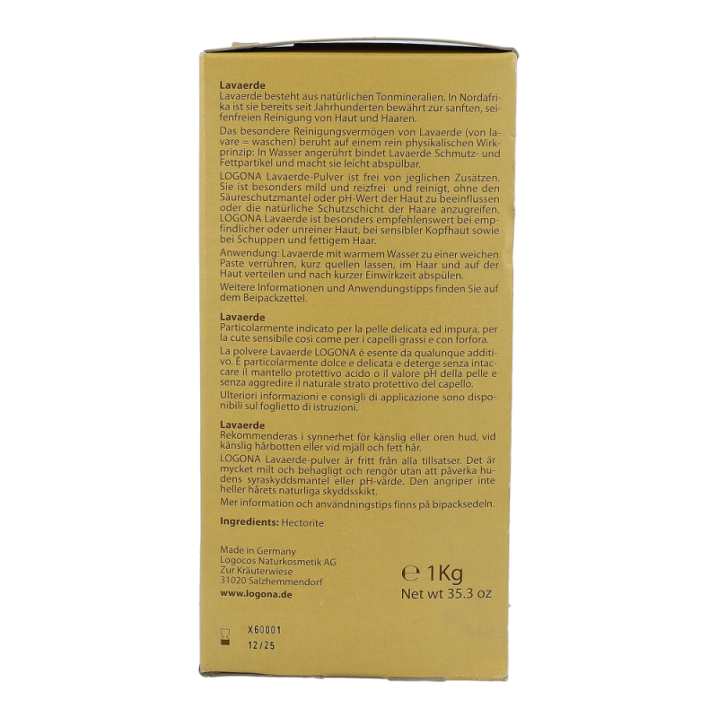 Logona Lavaerde reinigt äußerst schonend, bindet Lavaerde Schmutz- und Fettpartikel und macht sie leicht abspülbar. Logona Lavaerde-Pulver ist frei von jeglichen Zusätzen und besonders empfehlenswert bei empfindlicher oder unreiner Haut, bei sensibler Kopfhaut sowie bei Schuppen und beifettigem Haar.