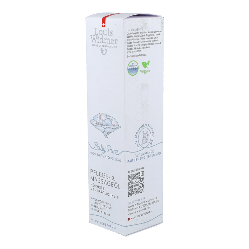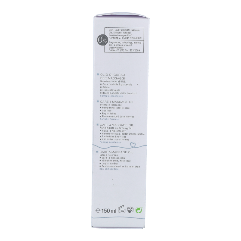 Das sanfte, beruhigende Pflege- und Massageö l verwö hnt die zarte Babyhaut mit natü rlichem Jojoba-, Mandel- und Sonnenblumenö