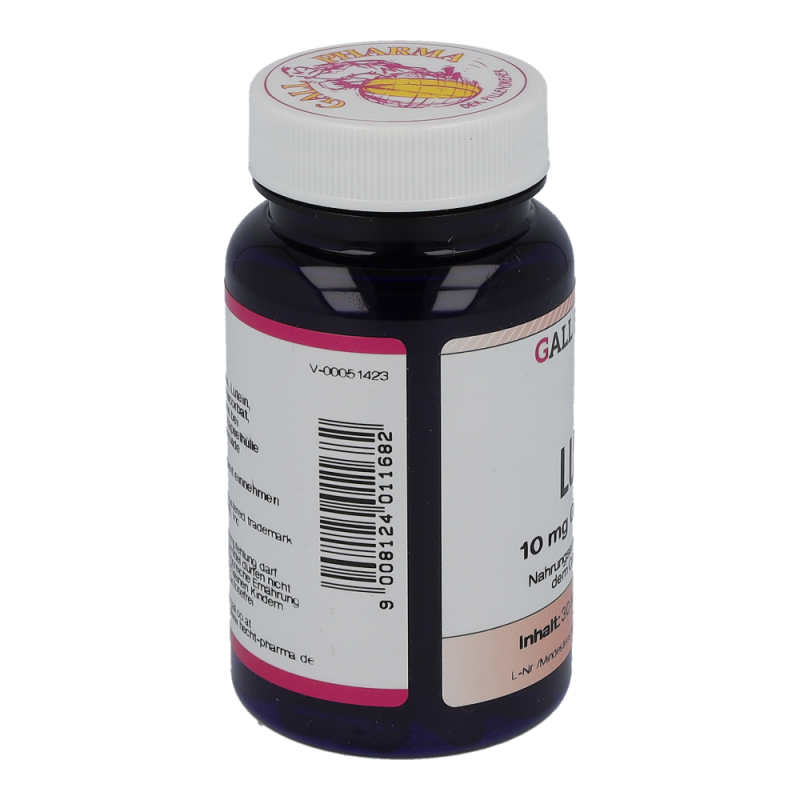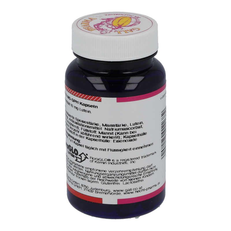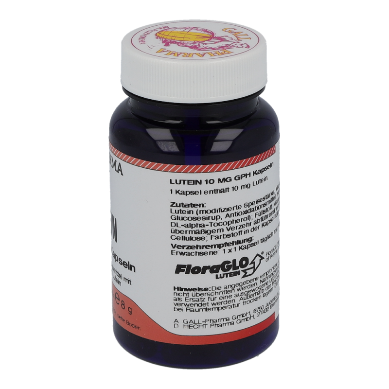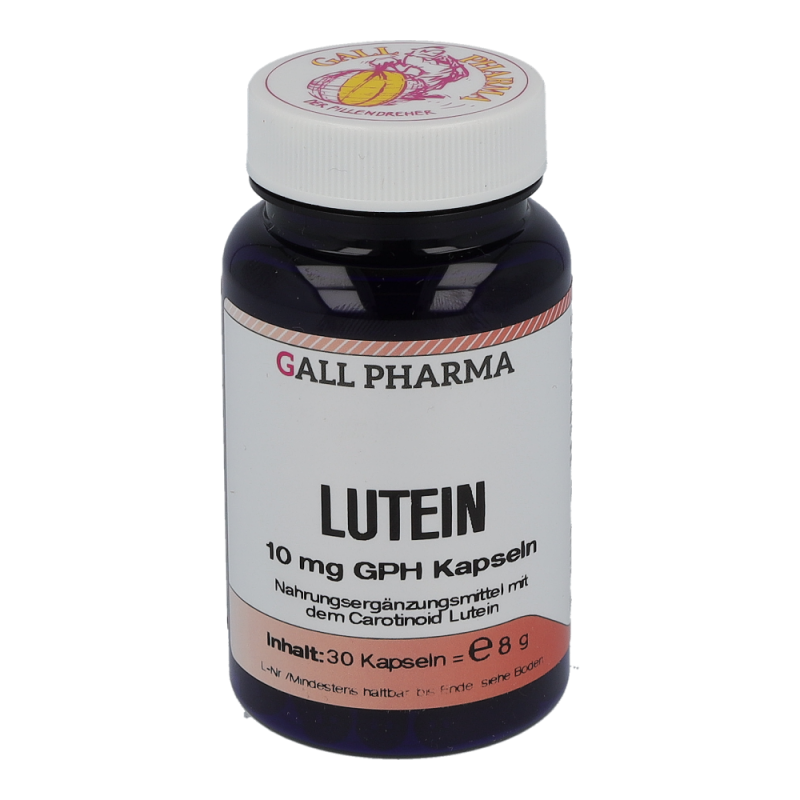 Gall Pharma Lutein 10 mg Kapseln 30 Stk. enthalten 10 mg Lutein.Die gelben Carotinoide Lutein und Zeaxanthin schützen das Auge vor Schäden durch (Sonnen-) Licht. Lutein und Zeaxanthin kommen in besonders hohen Konzentrationen im Gelben Fleck, in der Netzhaut des Auges, vor. Im Gelben Fleck werden die beiden Carotinoide selektiv angereichert. Lutein sorgt in der Makula für scharfes Sehen.