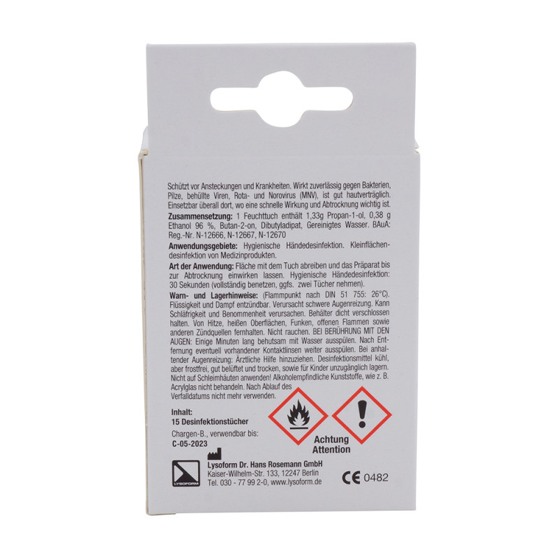 Lysoform Hospisept Desinfektions-Tücher dienen zur Desinfektion und Reinigung von Kleinflächen aller Art in Krankenhäusern, Sanatorien, Heimen, Arztpraxen und im Rettungsdienst. Sie sind überall dort einsetzbar, wo nicht gesprüht werden kann und schnelle Abtrocknung wichtig ist.