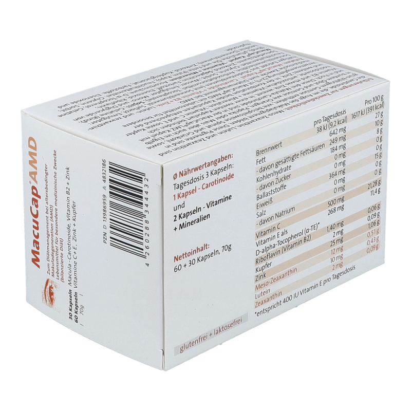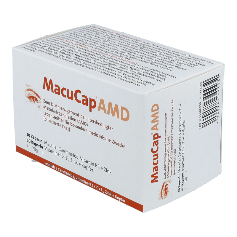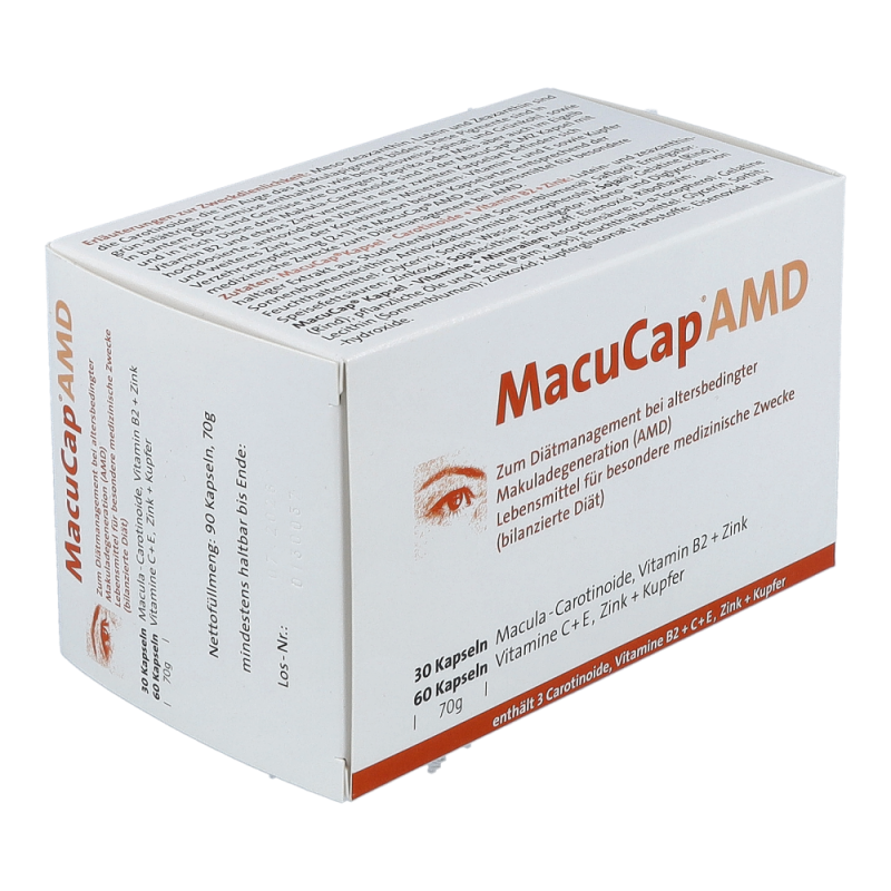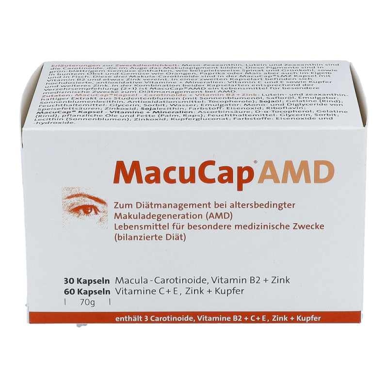 Macucap AMD Kapseln eignen sich zum Diätmanagement bei altersbedingter Makuladegeneration (AMD) – jetzt online bestellen und bares Geld sparen!