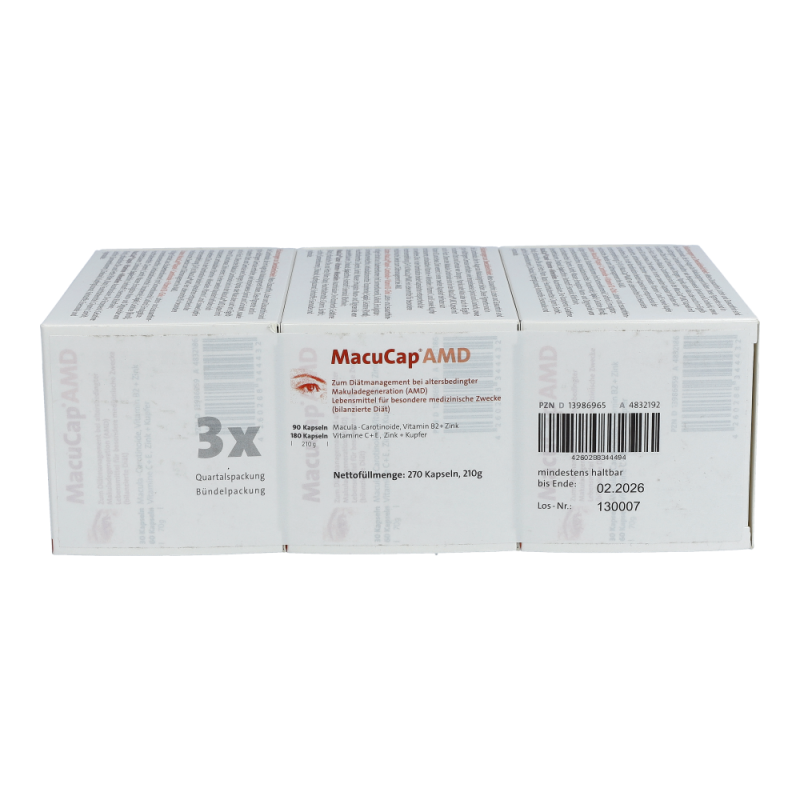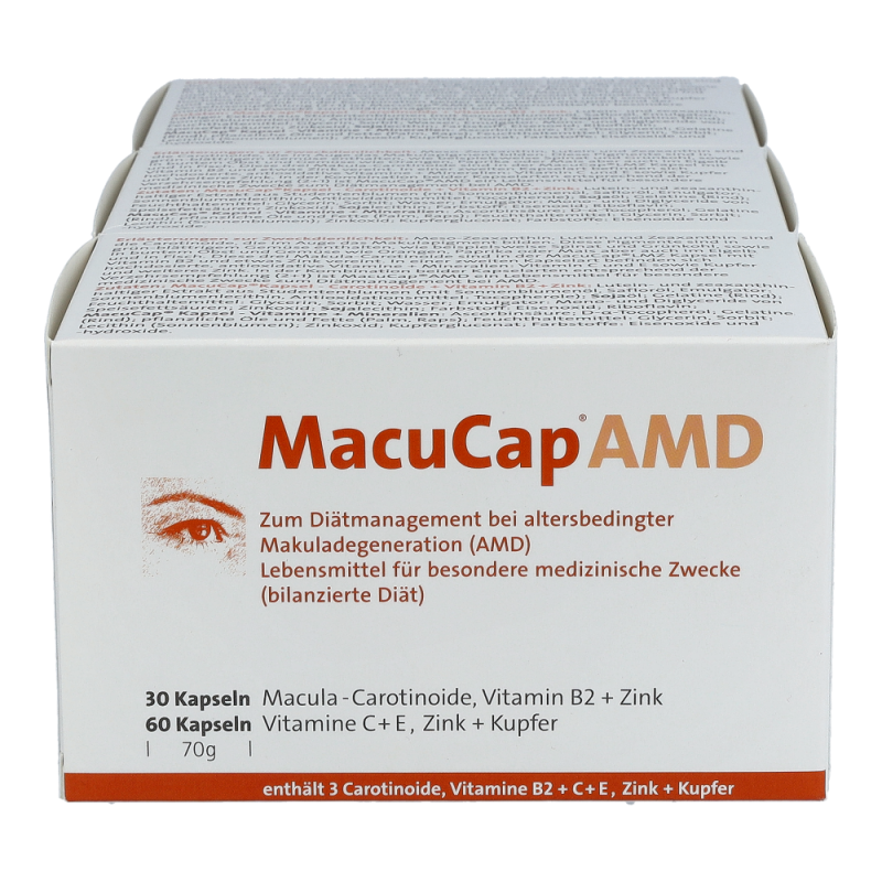 Macucap AMD Kapseln eignen sich zum Diätmanagement bei altersbedingter Makuladegeneration (AMD) – jetzt online bestellen und bares Geld sparen!