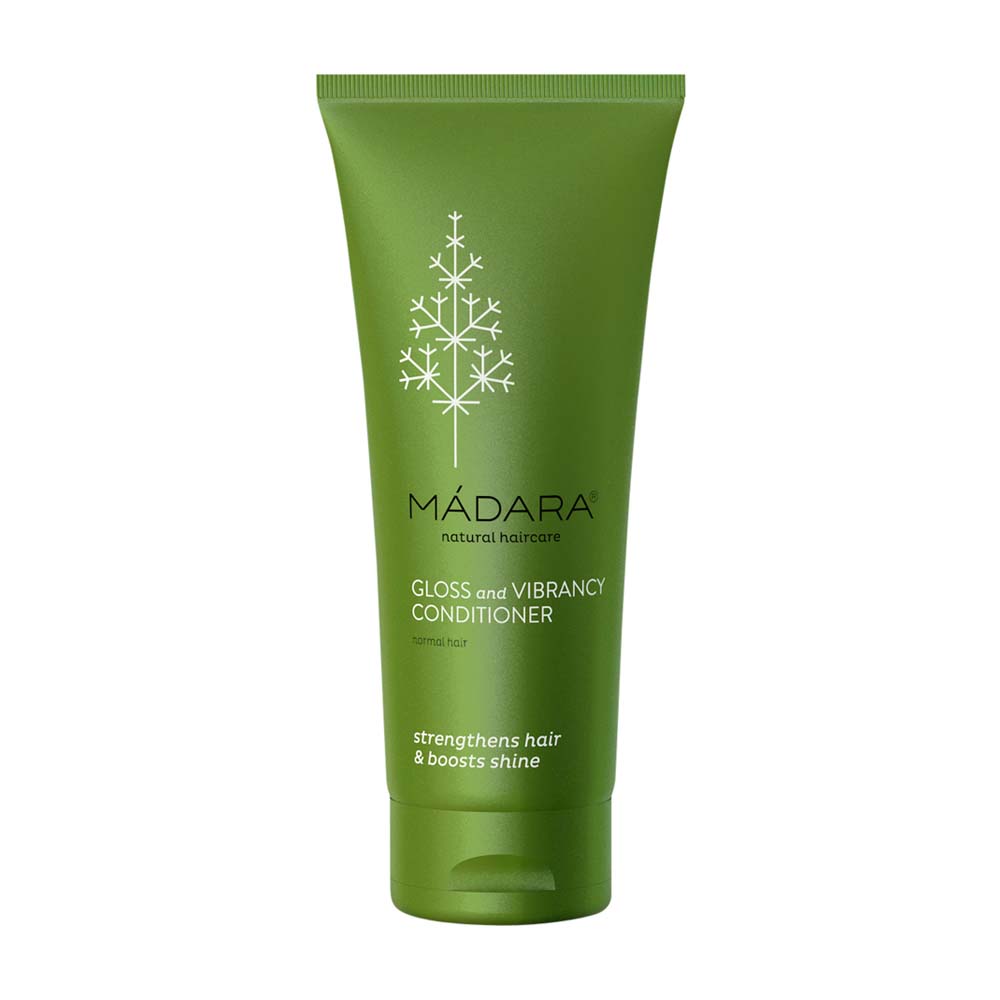 Madara Gloss and Vibrancy Conditioner verleiht dem Haar mehr Volumen und Glanz. Es pflegt, stärkt und beruhigt die Kopfhaut und hilft gegen trockene Haarspitzen und entwirrt das Haar. Das Haar wird kräftiger und seidig weicher.