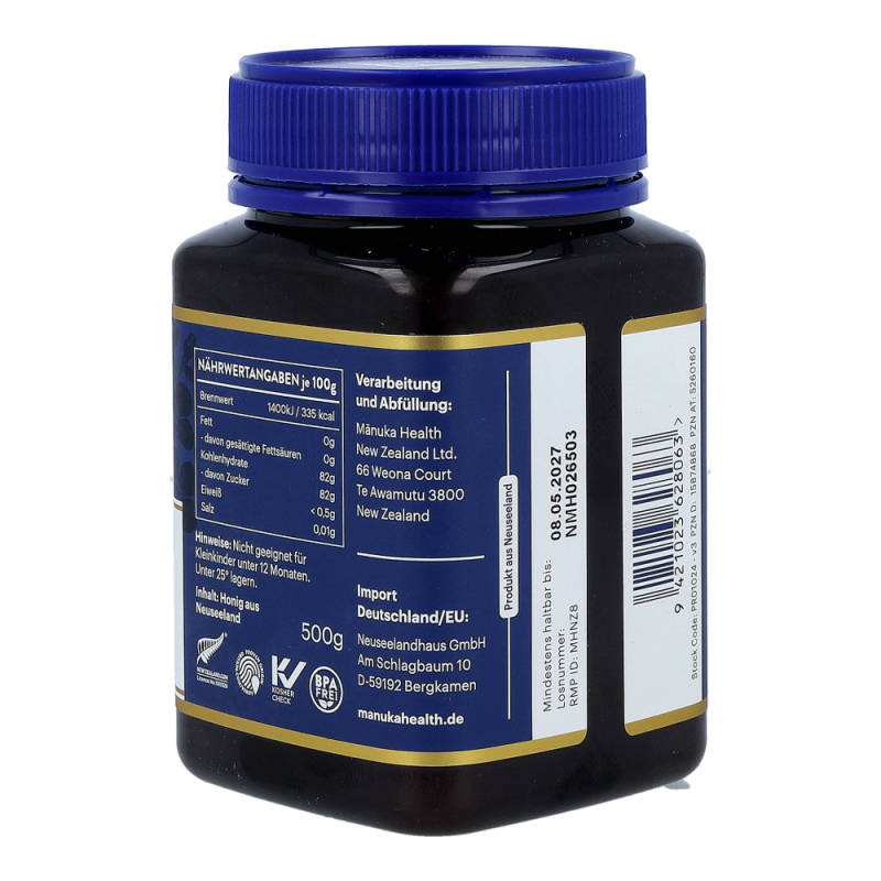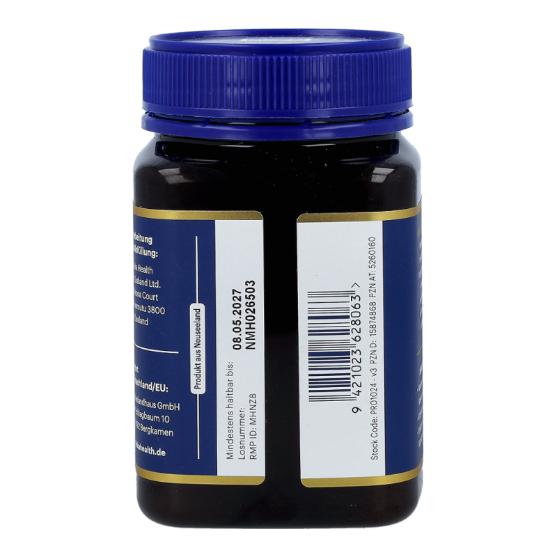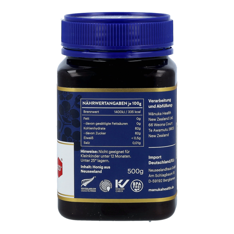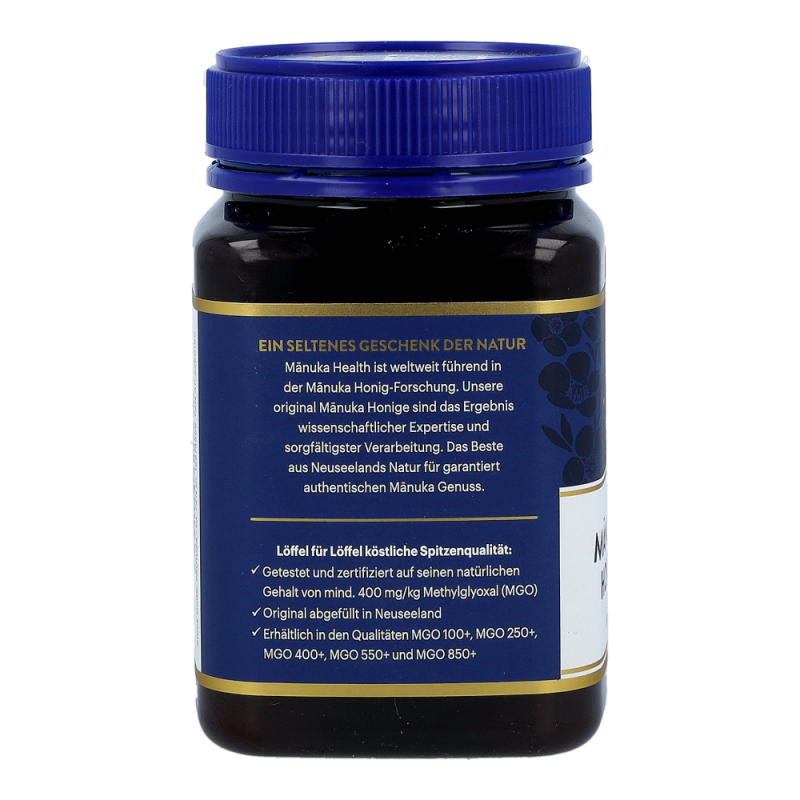 Der wertvolle Manuka Honig von Manuka Health aus Neuseeland. Dieser ist zertifiziert für eine natürliche Methylglyoxal-Qualität (MG). Dieser ist wissenschaftlich erwiesene wichtigste natürliche Bestandteil von Manuka Honig.