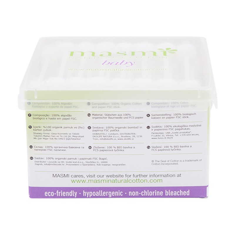 Masmi BIO Ohrenstäbchen Baby aus 100% Bio-Baumwolle – Baumwolle ist atmungsaktiv und leitet die Flüssigkeit wirksam ins Innere, garantiert ein optimales Feuchtigkeitsmilieu, welches den Wasserentzug reduziert und das natürliche Säure-Gleichgewicht der Schleimhaut nicht beeinflusst