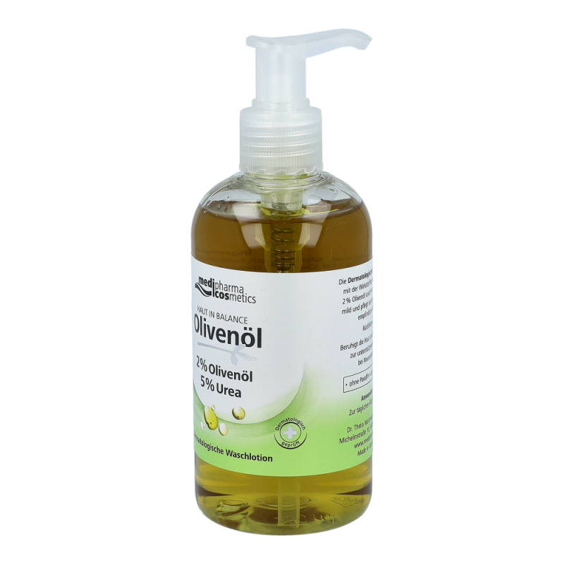 Medipharma Cosmetics Olivenöl Haut in Balance Dermatologische Waschlotion lindert den Juckreiz, ist stark ru–ckfettend und ist ideal auch zur unterstu–tzenden Pflege bei Neurodermitis. Mit der einzigartigen Wirkstoffkombination aus Olivenöl und Urea wird trockene und empfindliche Haut sanft gepflegt und mild gereinigt.