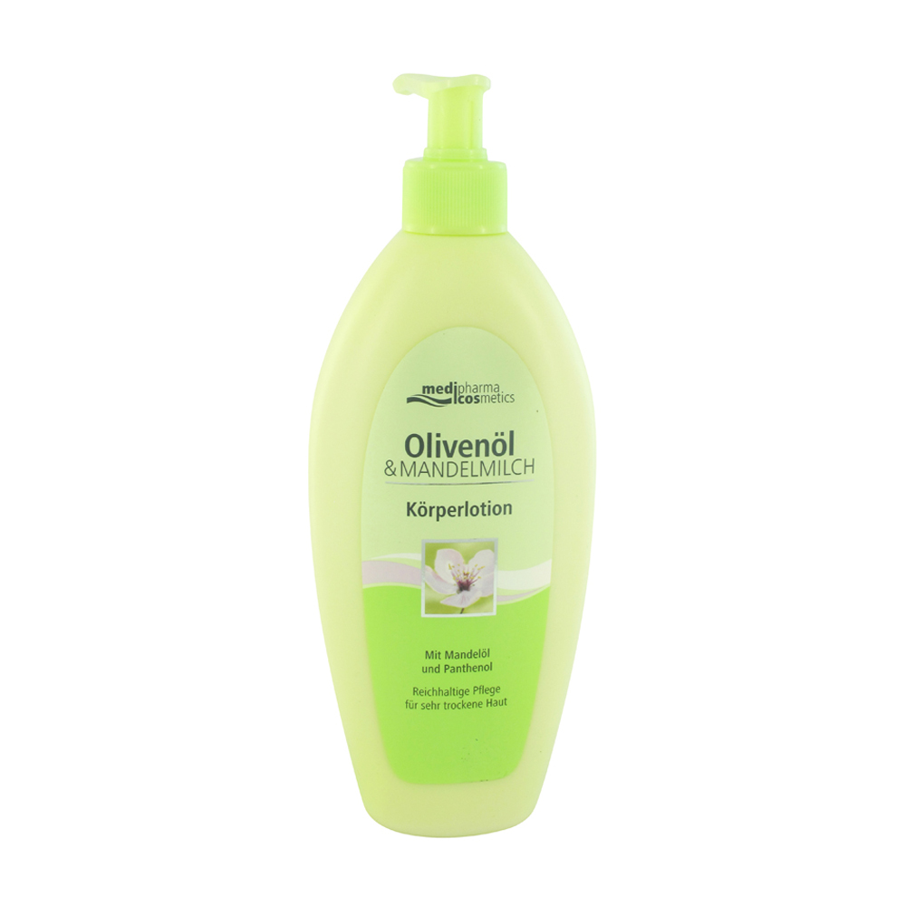 Medipharma Cosmetics Olivenöl & Mandelmilch Körperlotion verwöhnt Ihren Körper mit der leichten Pflegeformel aus kaltgepresstem Olivenöl aus der Toskana, konzentrierten Vitaminen und einem hochwirksamen 48h-Feuchtigkeitskomplex.