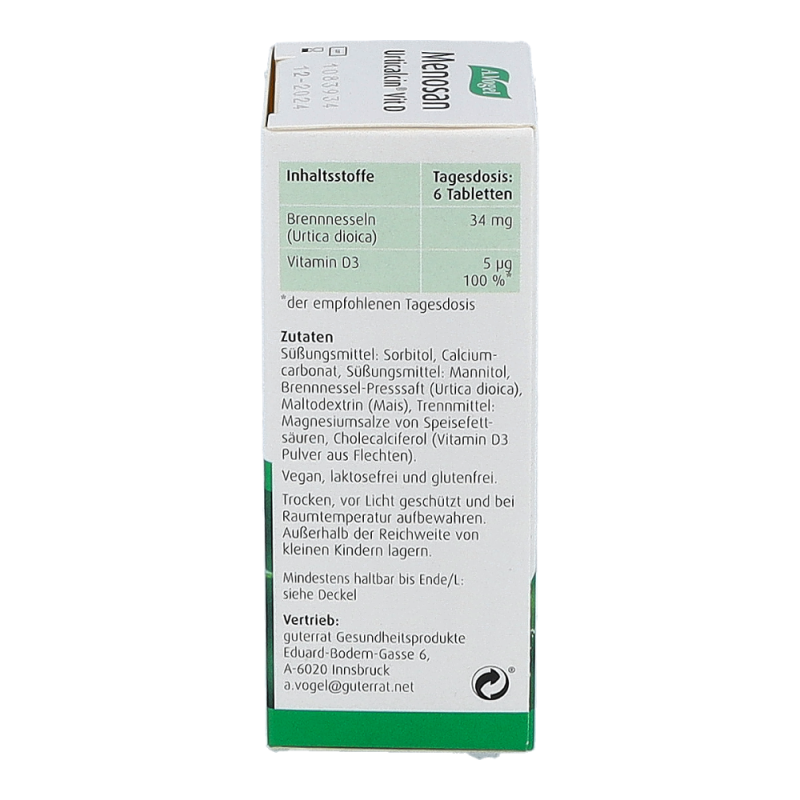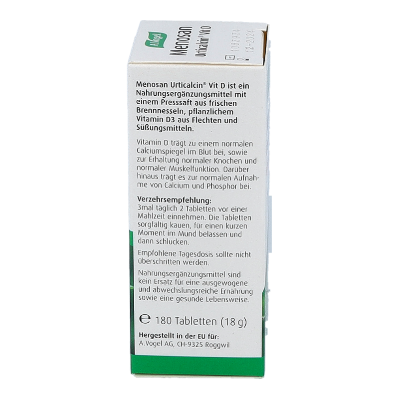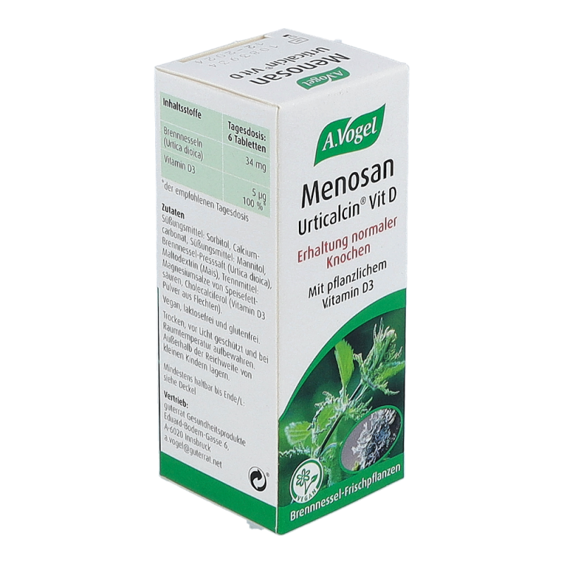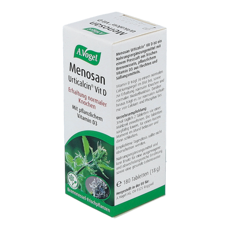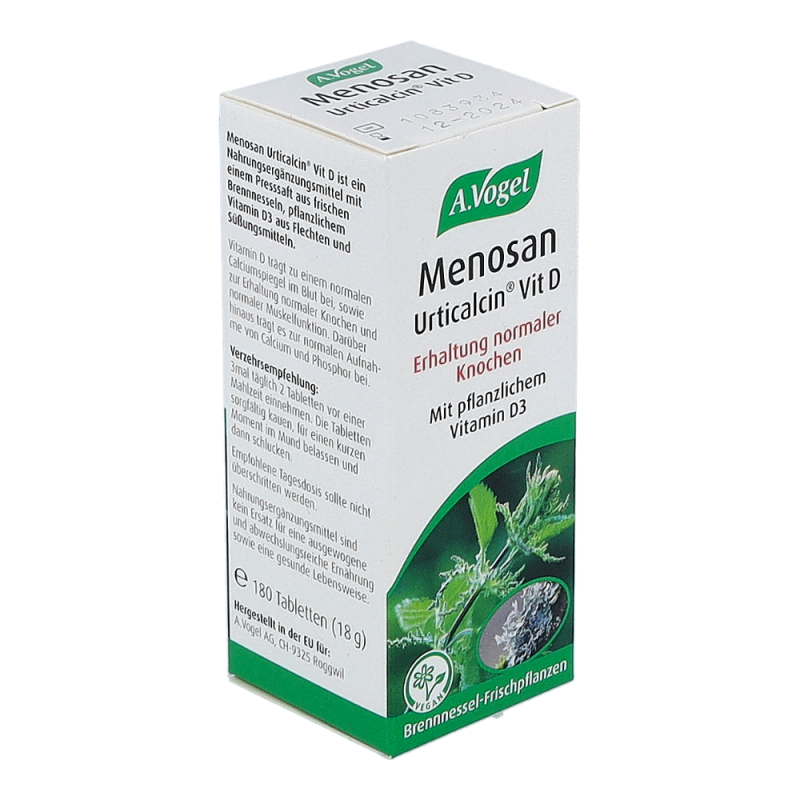 Menosan urticalcin Vit D zur Erhaltung einer normalen Knochenfunktion. Vitamin D trägt zu einem normalen Calciumspiegel im Blut bei, sowie zur Erhaltung normaler Knochen und normaler Muskelfunktion.Darüber hinaus trägt es zur normalen Aufnahme von Calcium und Phosphor bei.