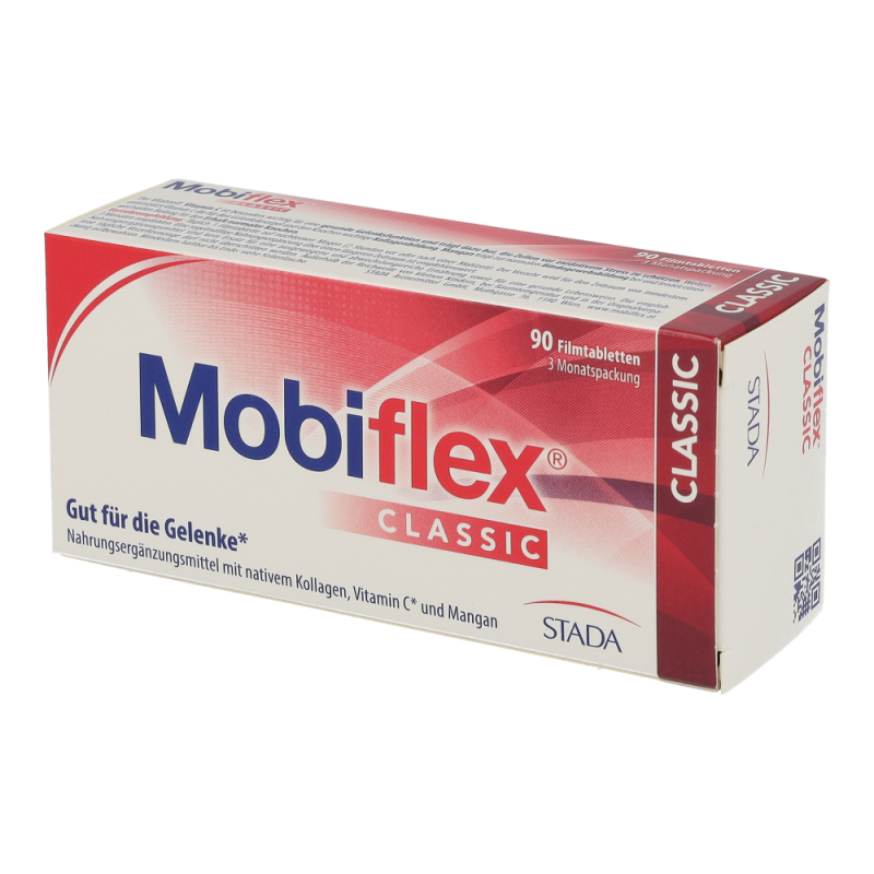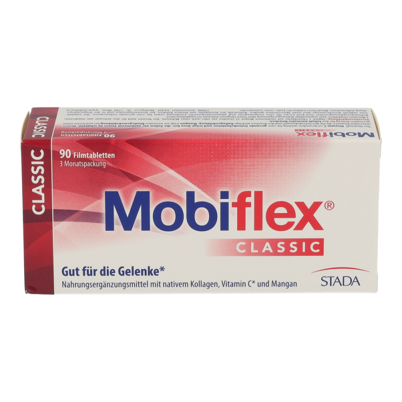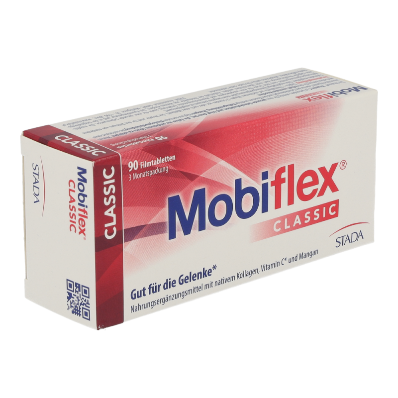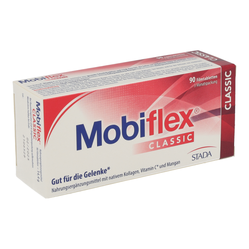 Gesunde Gelenke sind die Voraussetzung für unsere Beweglichkeit. Mobiflex® Classic Filmtabletten mit Mangan, Vitamin C und nativem Kollagen Typ II helfen, Knorpel und Bindegewebe mit allen wichtigen Nährstoffen zu versorgen. Vitamin C, Mangan und natives Kollagen Typ II, das durch ein spezielles, patentiertes Herstellverfahren bei niedrigen Temperaturen gewonnen wird, unterstützen die normale Bindegewebsbildung und leisten einen wertvollen Beitrag für den Erhalt und Schutz der Gelenke.