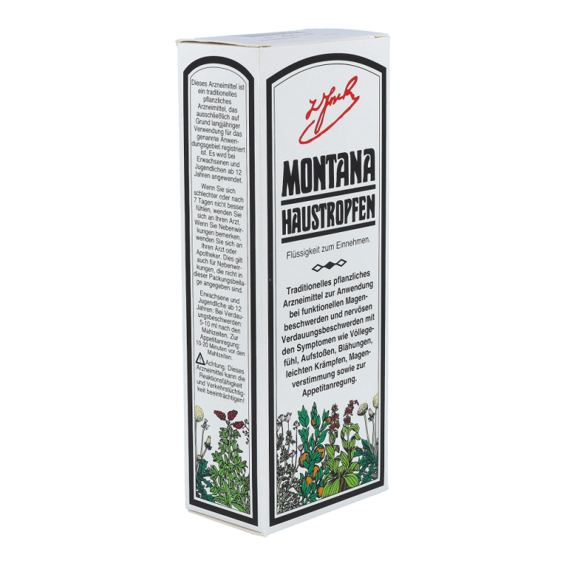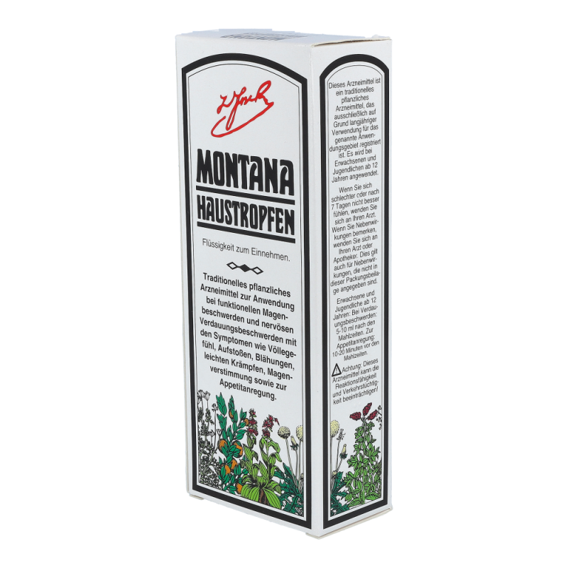 Montana ist ein alt bewährtes Hausmittel bei einer Vielzahl von Magen-Darmbeschwerden wie Verdauungsproblemen, Verstopfung, Appetitlosigkeit, Blähungen oder Übelkeit.