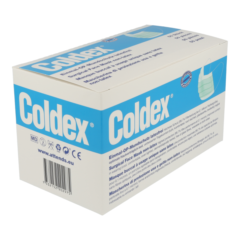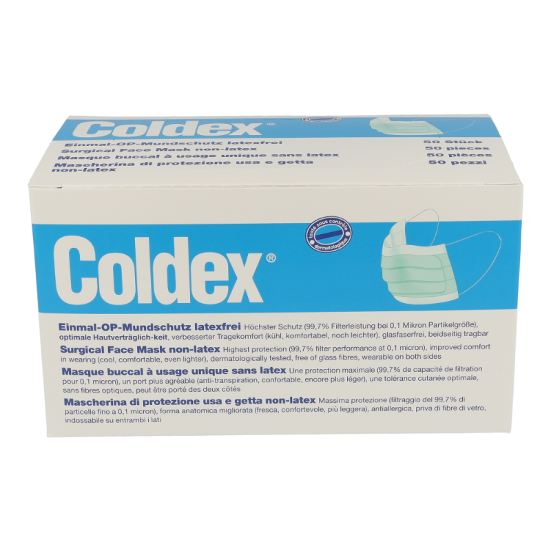 Mundschutz Coldex bietet maximale Filterleistung (99,7 % auch bei Kleinpartikeln). Er bietet optimale Sitz- und Passform sowie erhöhten Tragekomfort durch große Ohrenschlaufen. Coldex Mundschutz ist absolut glasfaser- und latexfrei.Der Coldex Mundschutz kann bei richtiger Anwendung dazu beitragen, die Übertragung von Erregern durch Tröpfcheninfektion, die vom Träger des Mundschutzes ausgehen, zu reduzieren.Einen ausreichenden Schutz vor Ansteckung mit dem Coronavirus bieten OP-Masken wie der Coldex Mundschutz nicht. Er bietet auch keinen vollständigen Schutz für gesunde Personen vor Tröpfcheninfektion durch Erreger aus der Umgebung. Einen solchen Schutz bieten nur Atemschutzmasken. .