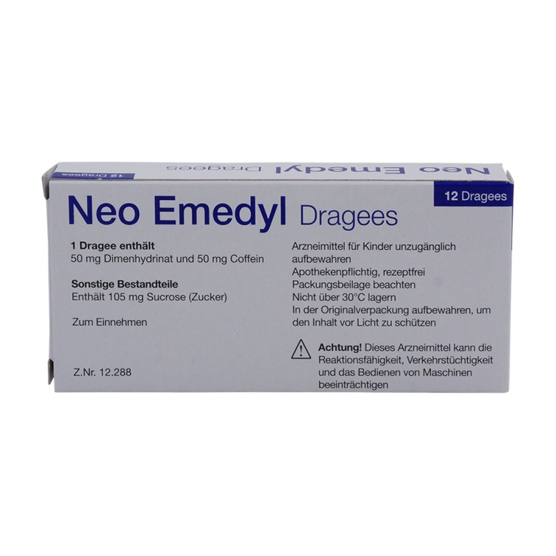 Neo Emedyl Dragees werden angewendet zur Vorbeugung und zur Behandlung der Reisekrankheit (Schwindel, Übelkeit und Erbrechen infolge See-, Luft-, Bahn-, Bus- und Autoreisen) – angewendet.