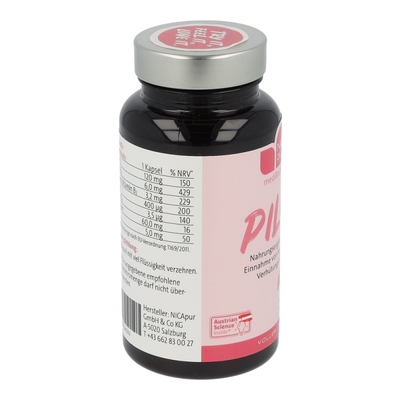 Nimmt man die „Pille“ über längere Zeit zu sich, kann es zu einem Mangel an Vitamin B6 und Folsäure kommen. Beide sind für eine normale Funktion der Psyche bedeutend. Ebenso erhöht ist der Bedarf an Magnesium, Zink und an den Vitaminen C, B12 und B2. Im Präparat mediBalance PILCO sind genau jene Nährstoffe enthalten, die bei Einnahme der „Pille“ gebraucht werden.