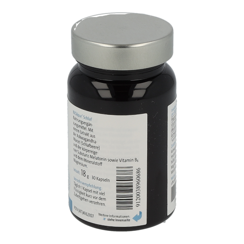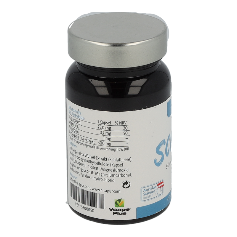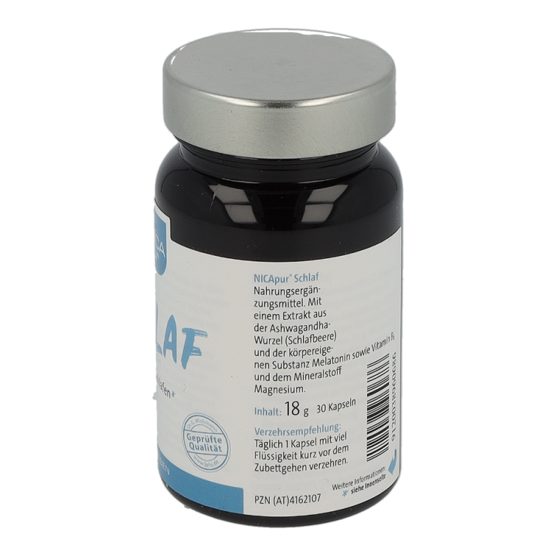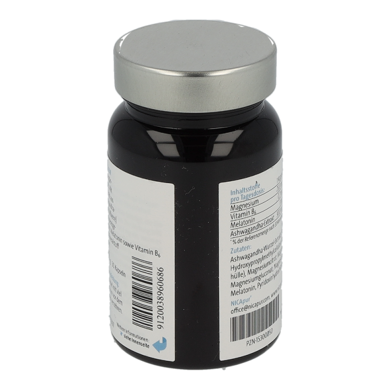 NutriCoach® Schlaf unterstützt natürlich beim Einschlafen: Mit einem Extrakt aus der Schlafbeere und der körpereigenen Substanz Melatonin sowie Vitamin B6 und dem Mineralstoff Magnesium. Nahrungsergänzungsmittel. Melatonin trägt zur Verkürzung der Einschlafzeit bei. Die Wirkung tritt bei der Aufnahme von 1 mg ein, wenn es kurz vor dem Zubettgehen verzehrt wird. Magnesium und Vitamin B6 unterstützen die normale Funktion der Nerven. Die Schlafbeere (Ashwagandha) fördert die körperliche und geistige Entspannung.