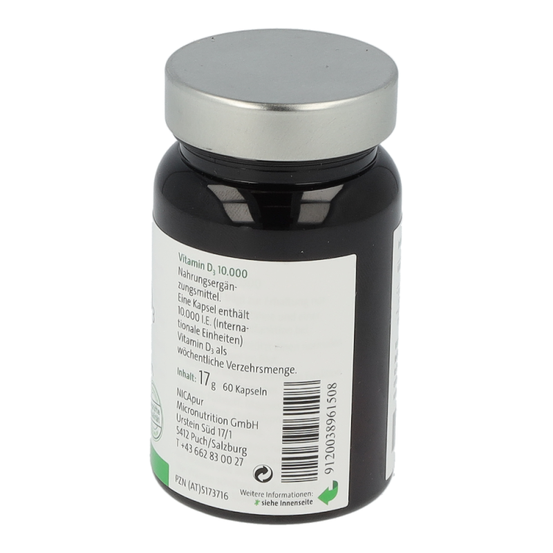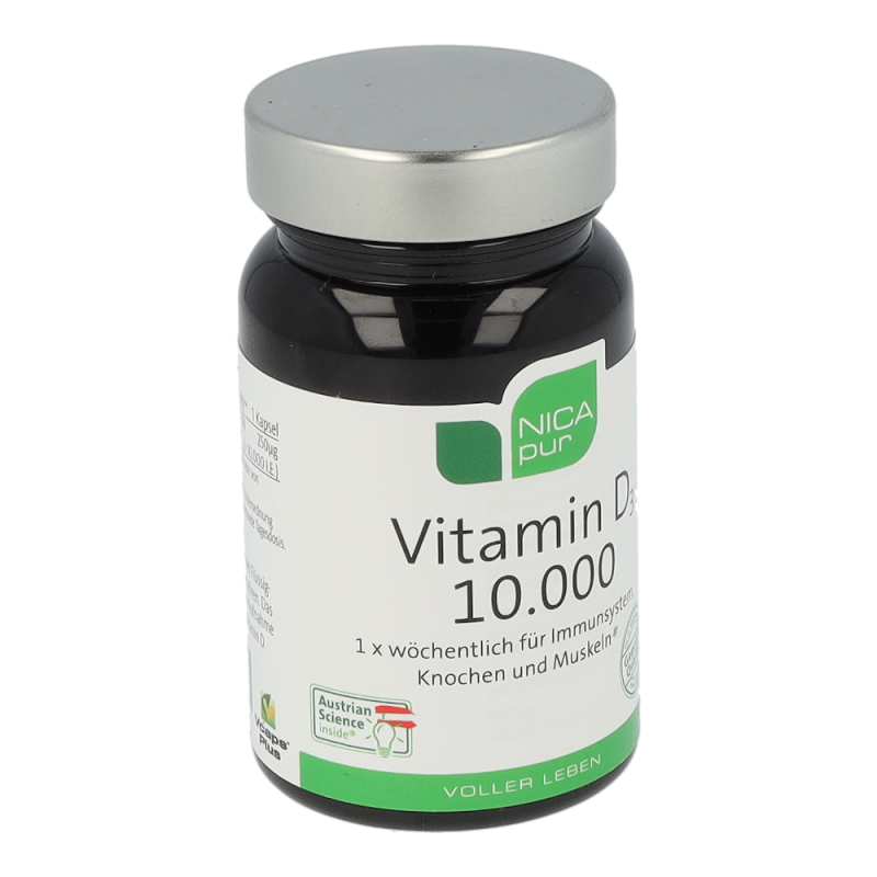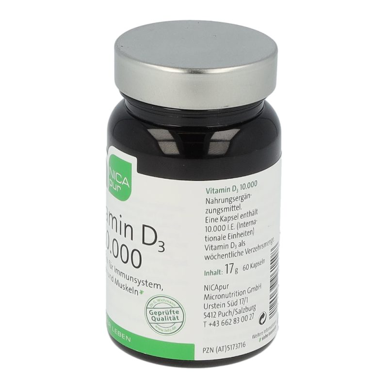Nicapur Vitamin D3 10.000 Kapseln können auch als „Knochenvitamin-Kapseln“ bezeichnet werden. Allerdings beinflussen sie auch viele andere Funktionen des Körpers. Sie unterstützen unter anderem die normale Funktion des Immunsystems, sind wichtig für die Knochen und die Aufrechterhaltung eines normalen Calciumspiegels im Blut.
