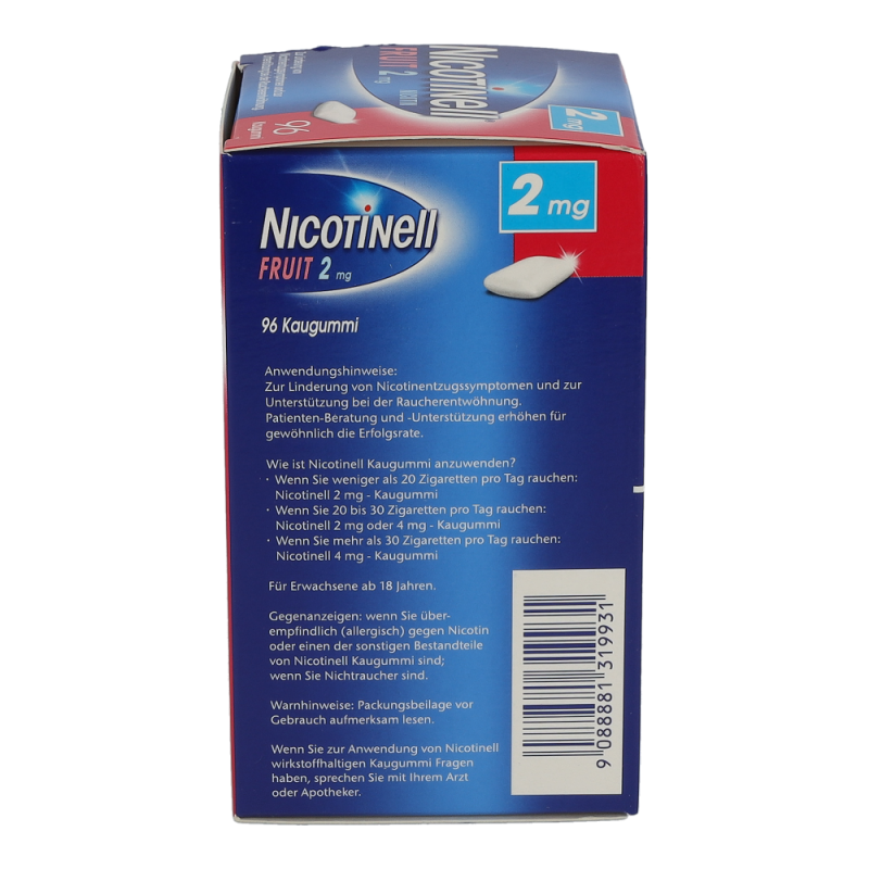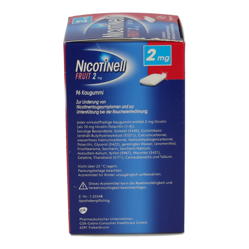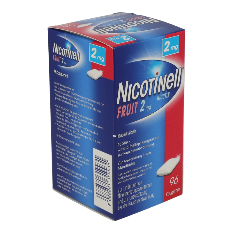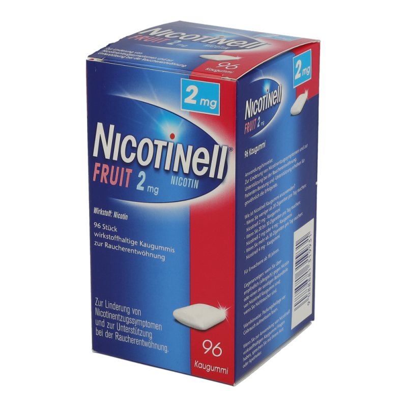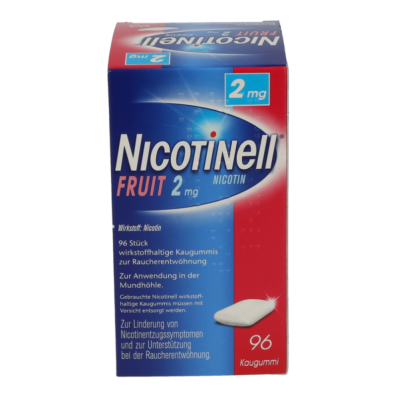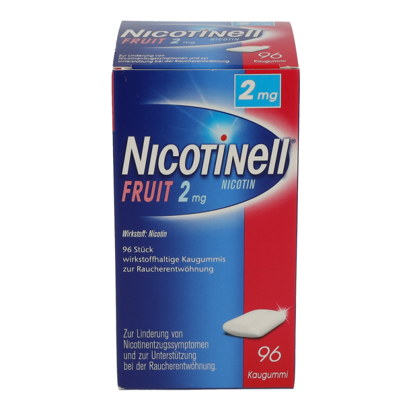 Nicotinell Kaugummi Fruit 2 mg hilft das Rauchen aufzugeben, mildert die unangenehmen Entzugserscheinungen und dämpft das Verlangen zu rauchen.
