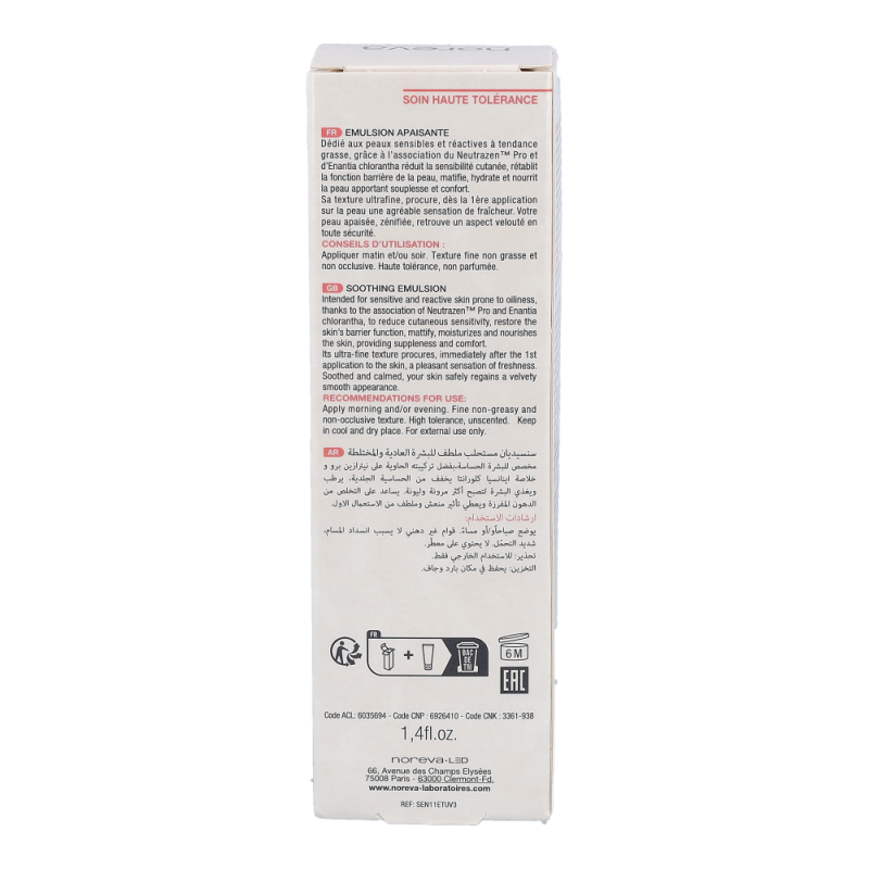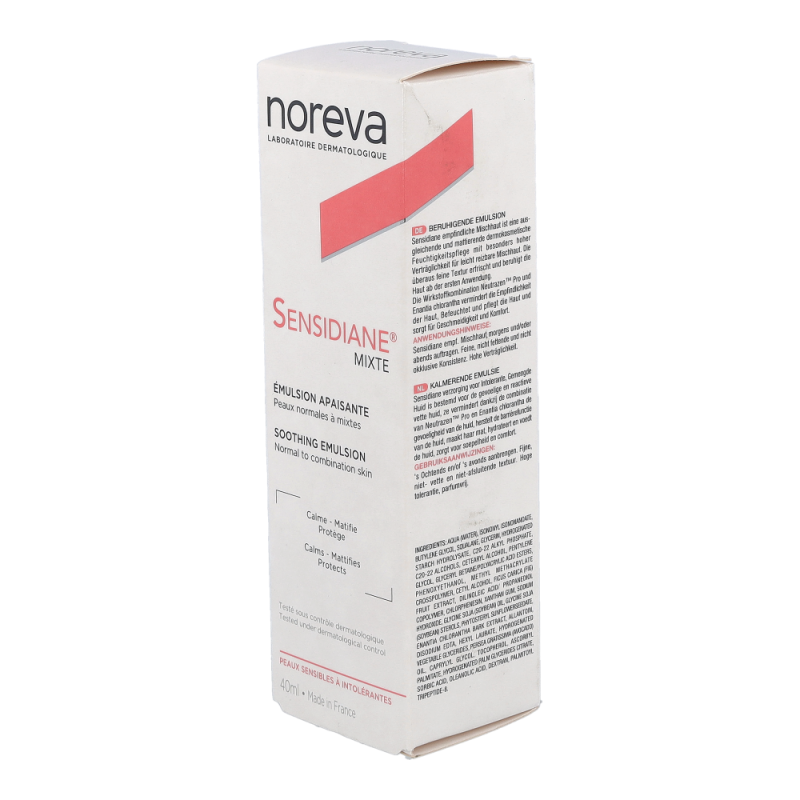 Noreva Sensidiane Creme Empfindliche Haut Mischhaut normalisiert Empfindlichkeit und Toleranzschwelle, stellt die Barrierefunktion der Haut wieder her und schützt die Haut vor äußeren Reizen. Außerdem vermindert die Creme sichtbar Hautrötungen und macht den Teint gleichmäßiger. Zudem gewährleistet sie eine gute Hydratation, beruhigt die Haut und führt zu nachhaltigem Wohlbefinden und angenehmem Frischegefühl.