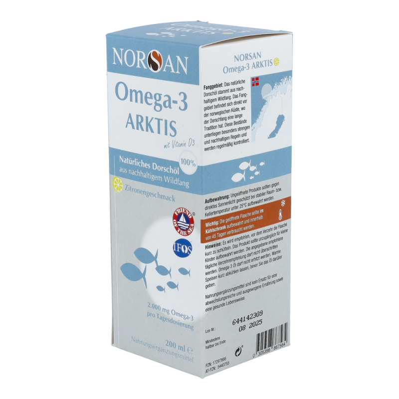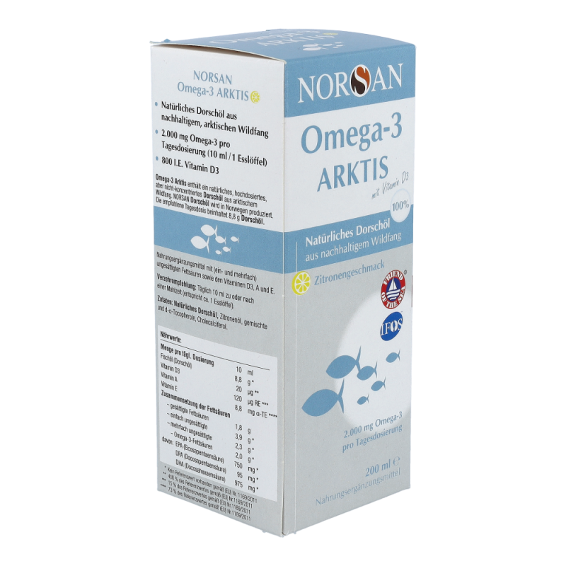 Omega-3 Arktis (200 ml) ist ein rein natürliches Dorschöl aus nachhaltiger arktischer Fischerei. Gut für Herz, Augen und Gehirn – dauerhaft preisreduziert bestellen!
