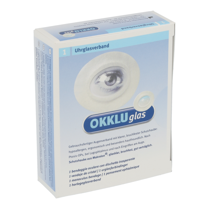 Okkluglas Uhrglasverband ist ein hautfreundlicher und ergonomisch geformter medizinischer Helfer für die Augen. Die Kunststoffhaube ist leicht, stabil und schützt. Der Uhrglasverband liegt perfekt an und bietet höchsten Komfort.