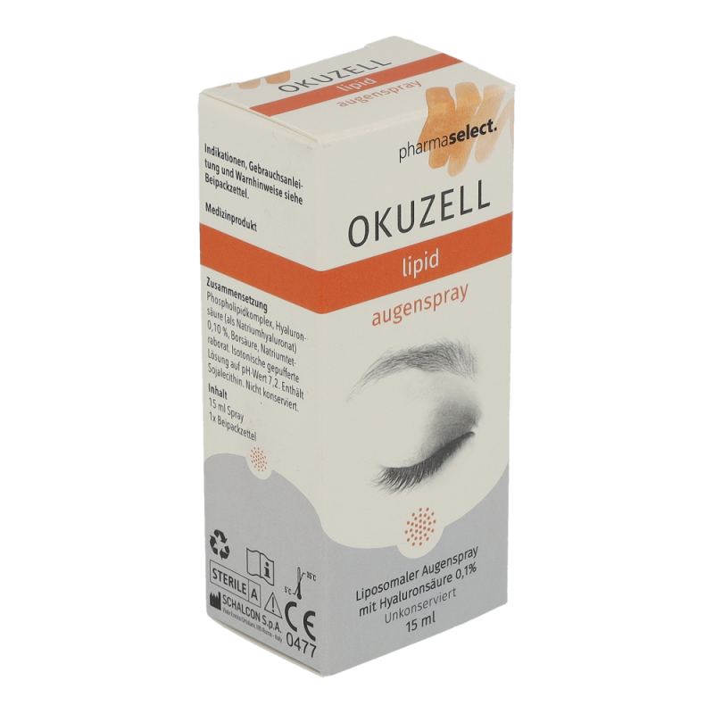 Was ist das Besondere an Okuzell lipid Augenspray? Okuzell lipid Augenspray wird auf das geschlossene Auge gesprüht und ist Kinder, Kontaktlinsenträger und alle, die Schwierigkeiten beim Eintropfen ins Auge haben, geeignet. Nach Anbruch ist Okuzell lipid 6 Monate haltbar.